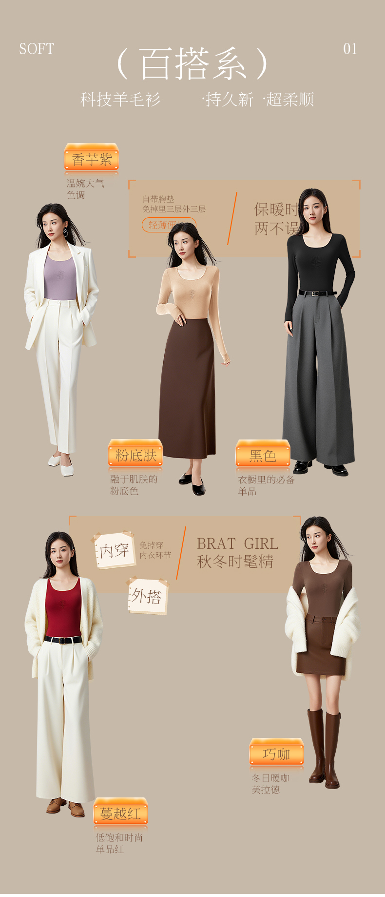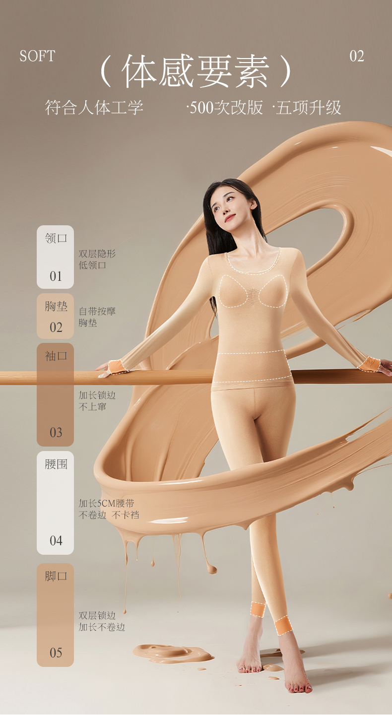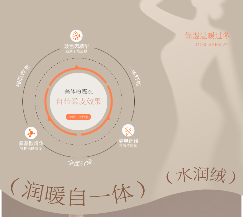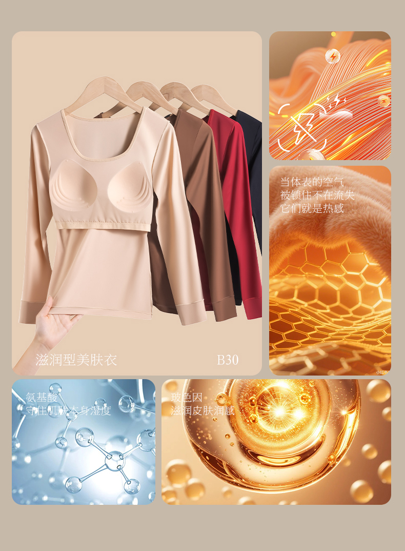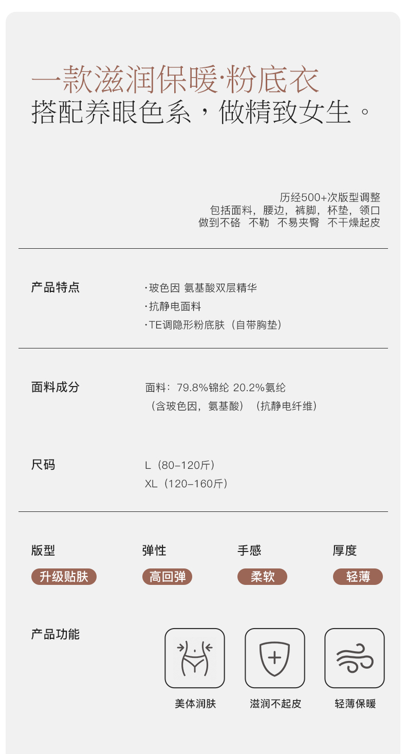 保暖软黄金!二代玻色因纤体男女款保暖粉底衣 自带胸垫 三重润肤抗静电 添加玻色因氨基酸因子
