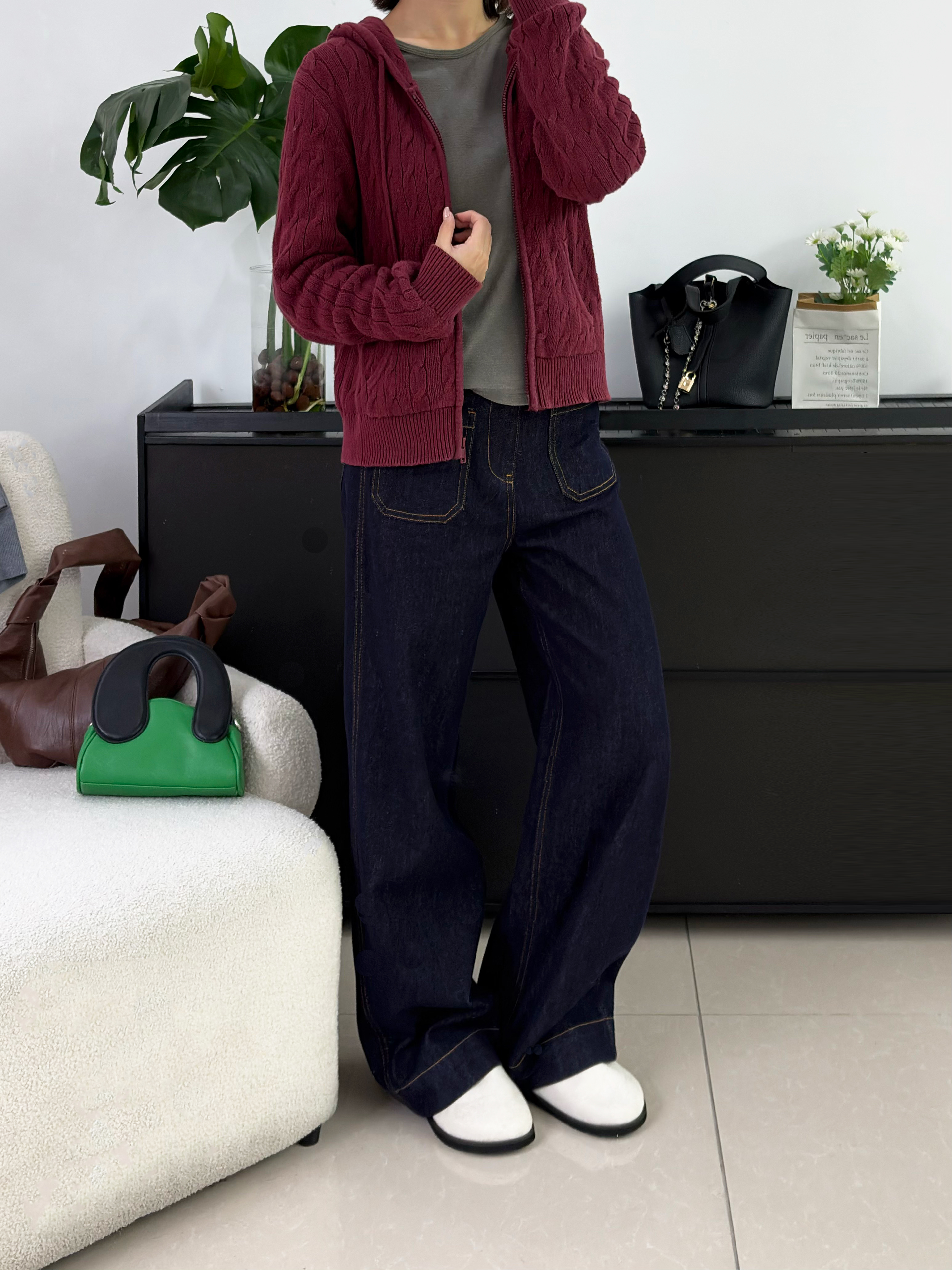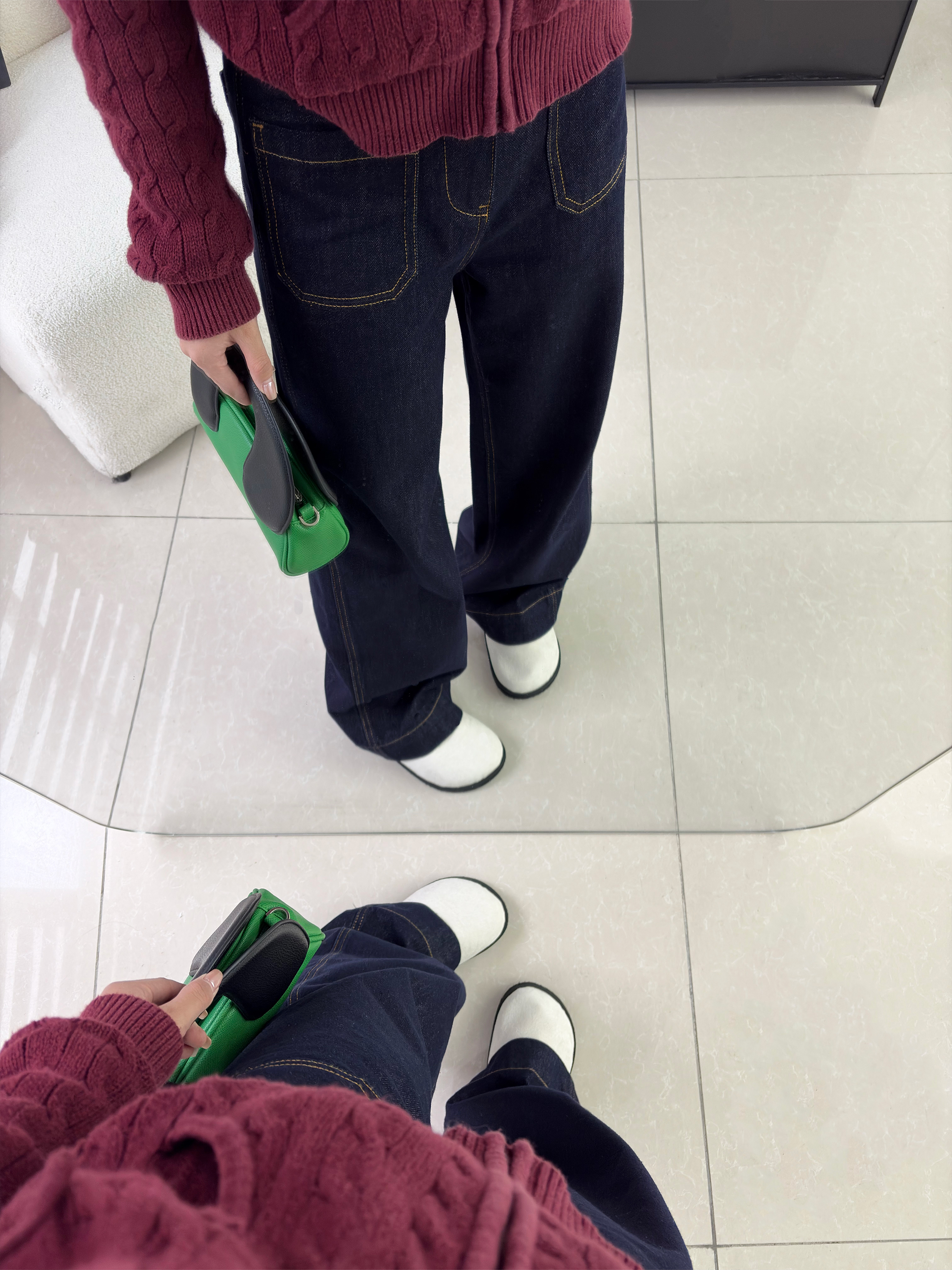 会员福利【舒适主义~垂坠/挺括】拉夏贝尔/La Chapelle高腰明线阔腿牛仔裤宽松设计感百搭显瘦直筒长裤