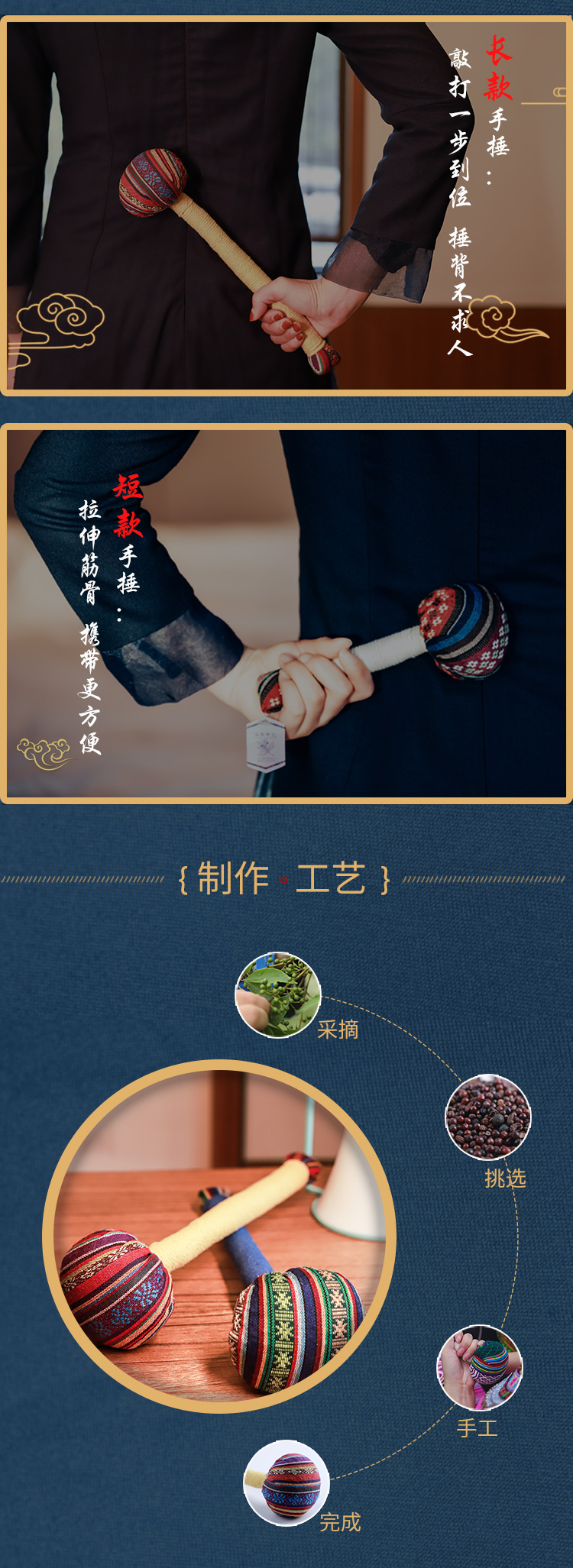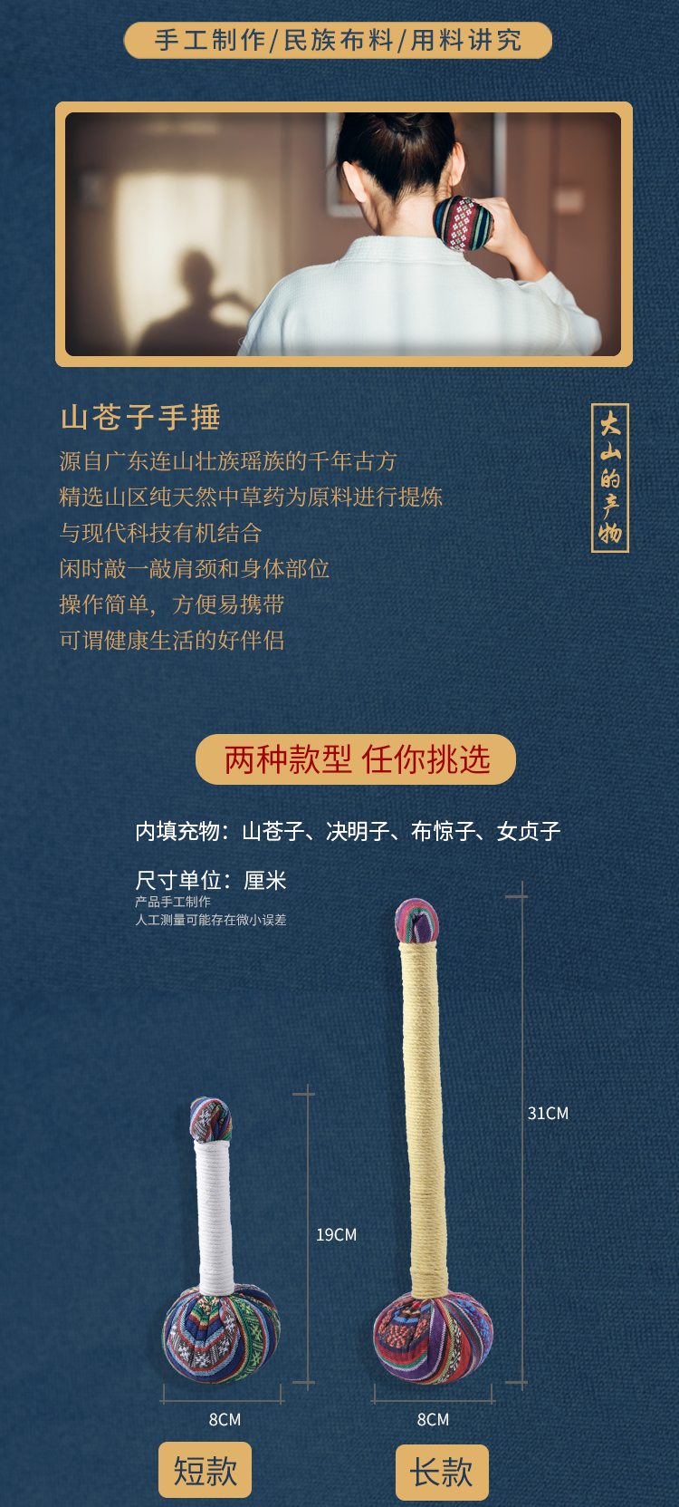 山苍子按摩手捶 长柄+短柄 长柄手锤低头族敲打捶经络 便携 颜色随机