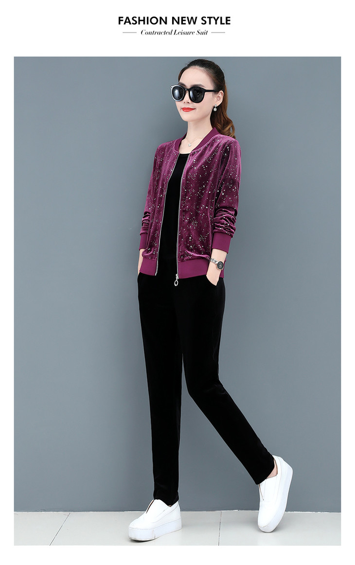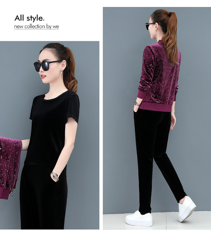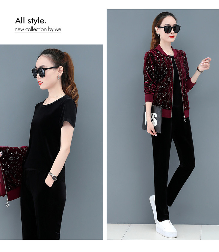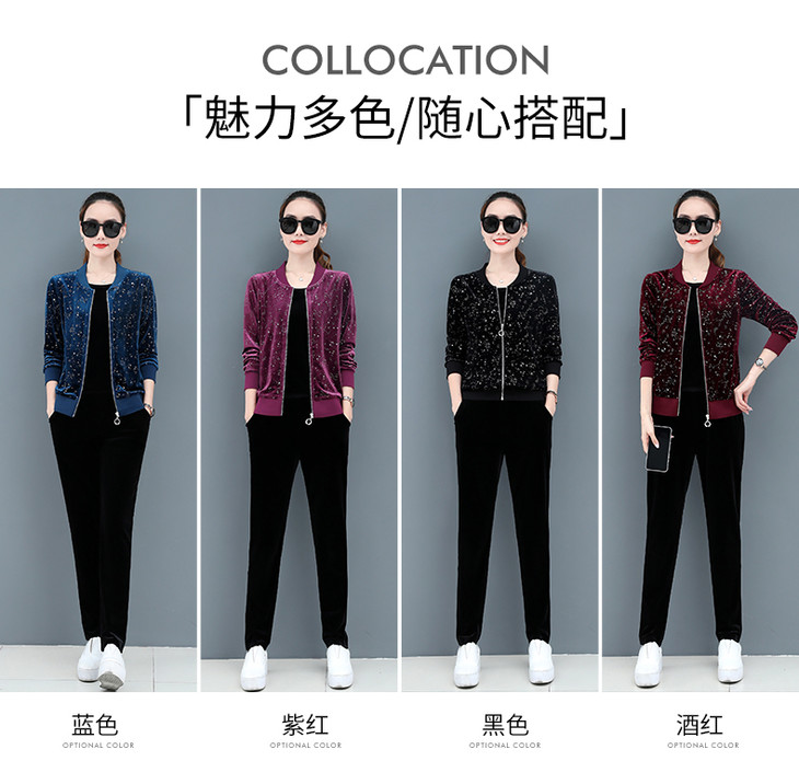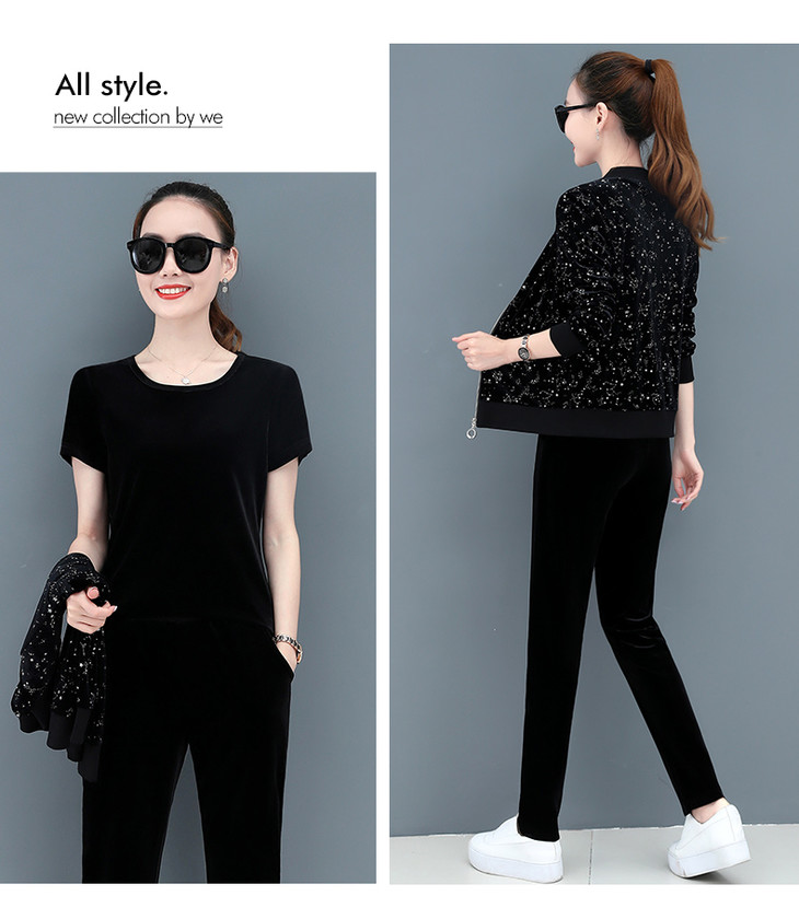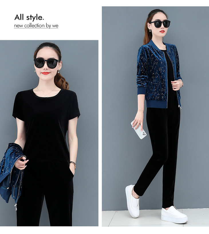 SP-306717休闲时尚显瘦金丝绒三件套套装