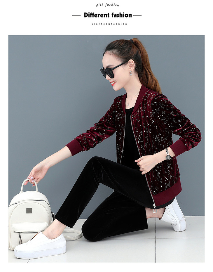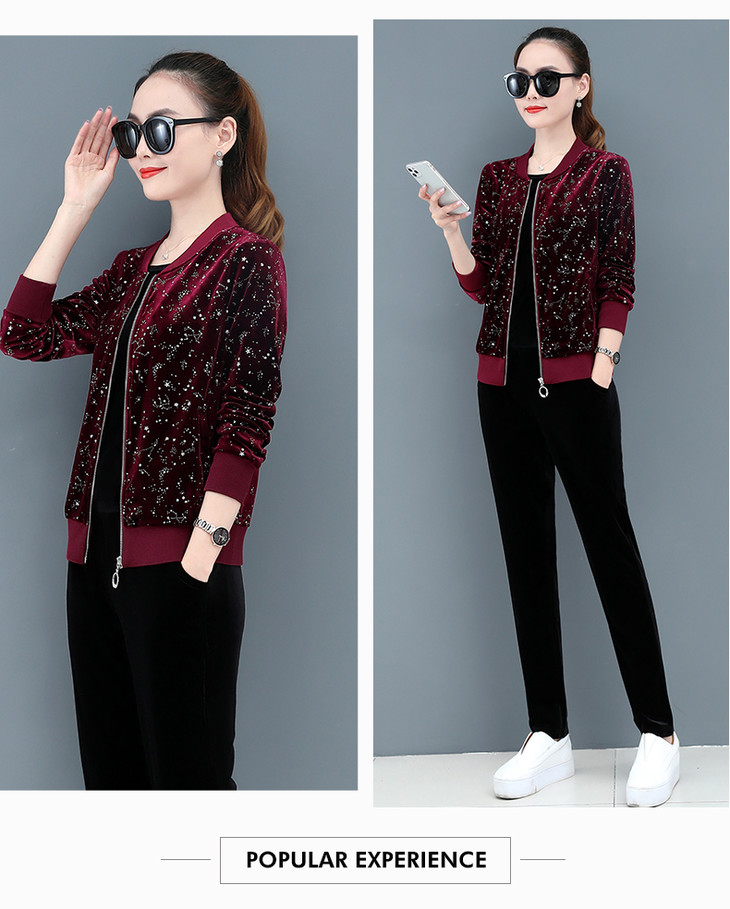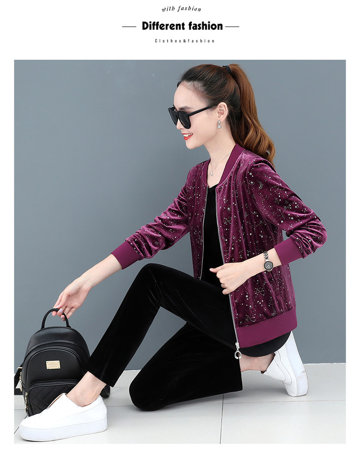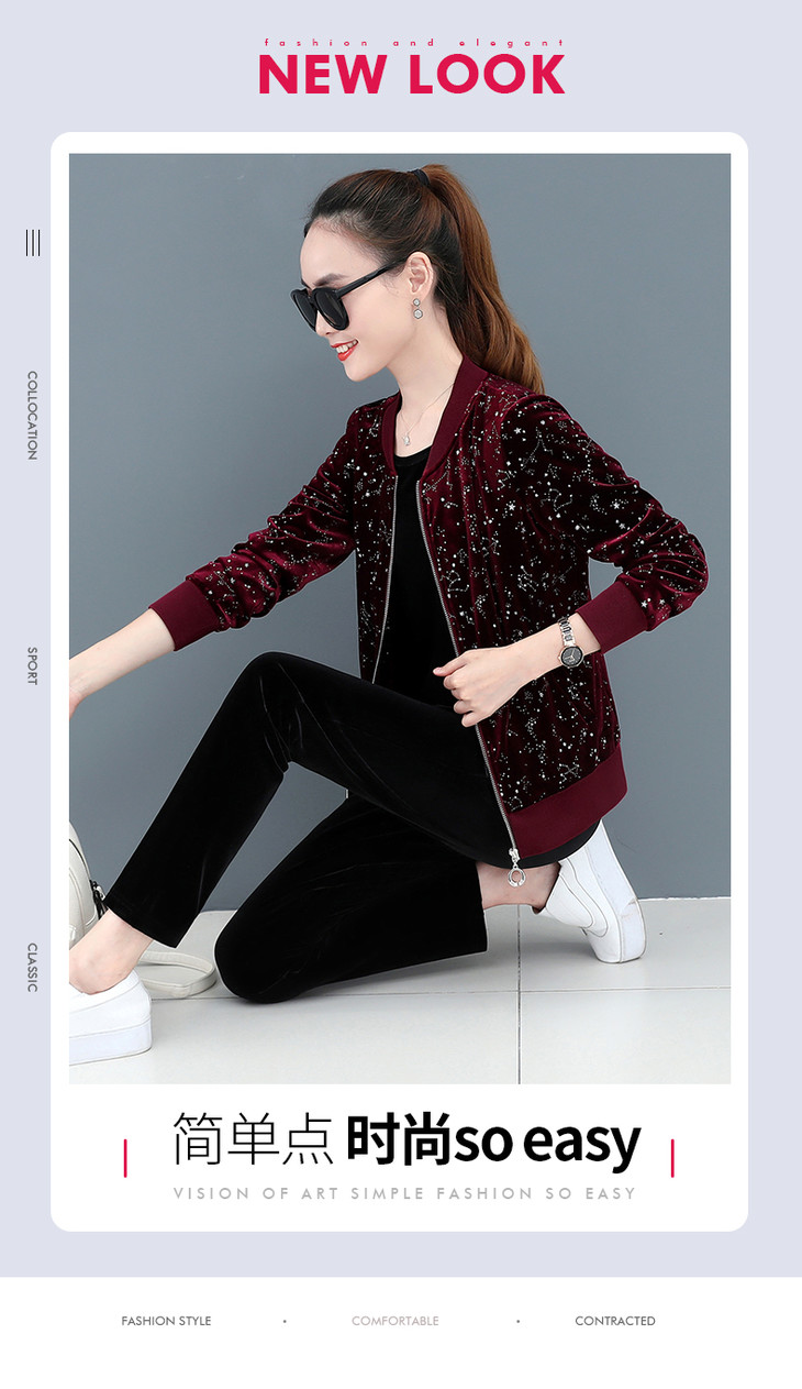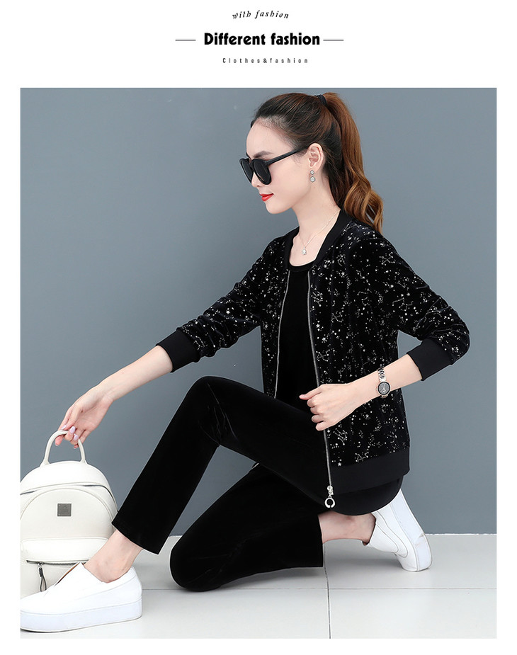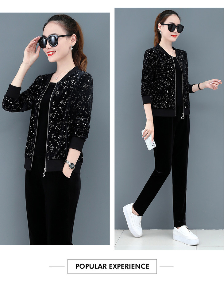 SP-306717休闲时尚显瘦金丝绒三件套套装