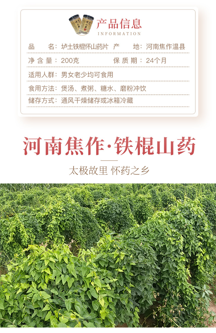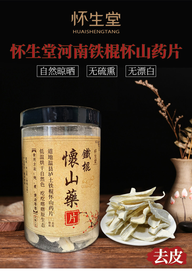 【怀生堂】温县垆土铁棍怀山药片 选用铁棍山药 自然晾晒 无硫熏 肉质紧实 口感细腻 自然原色无添加,200克/罐
