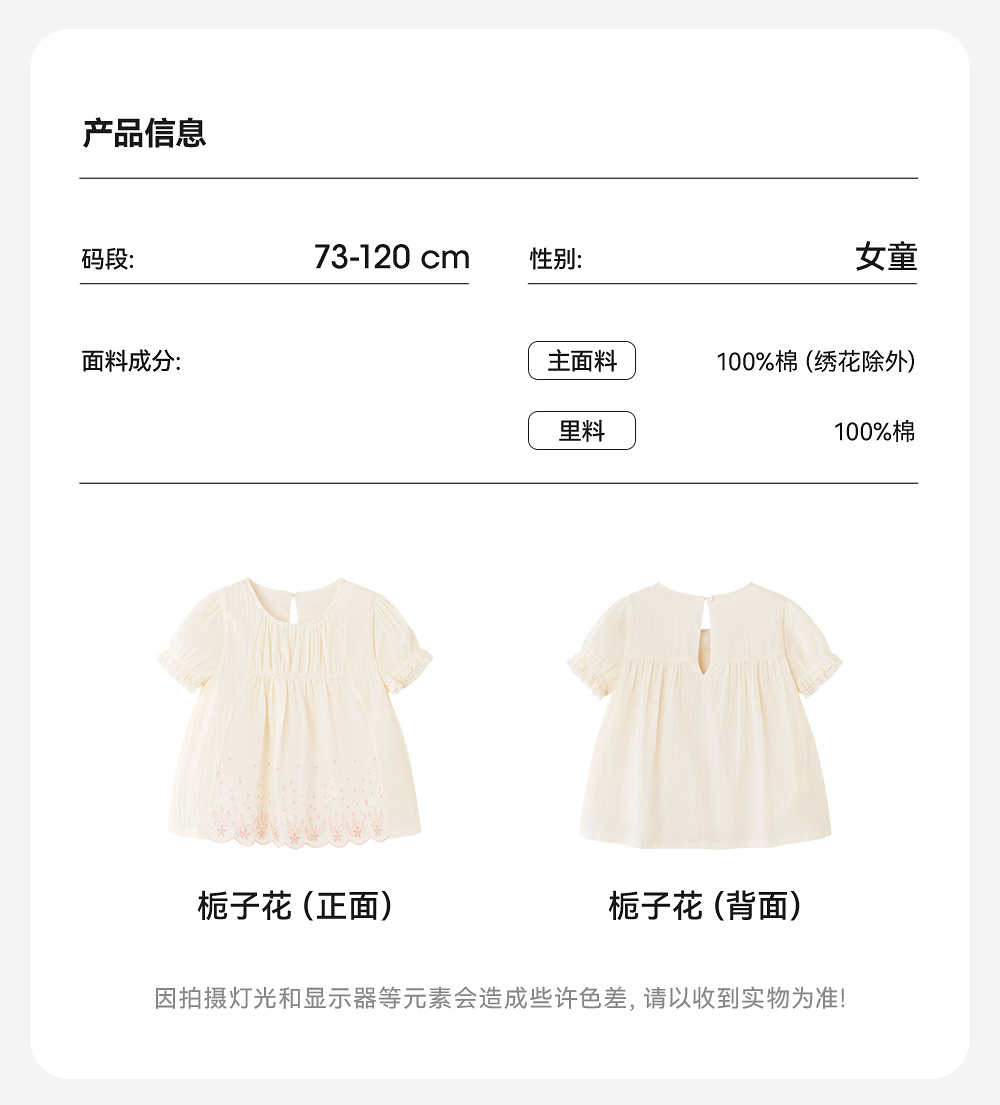 【商场同款】英氏女童T恤夏季短袖透气纯棉女宝可爱上衣休闲白T恤