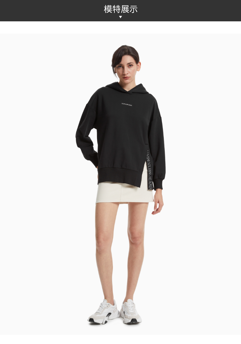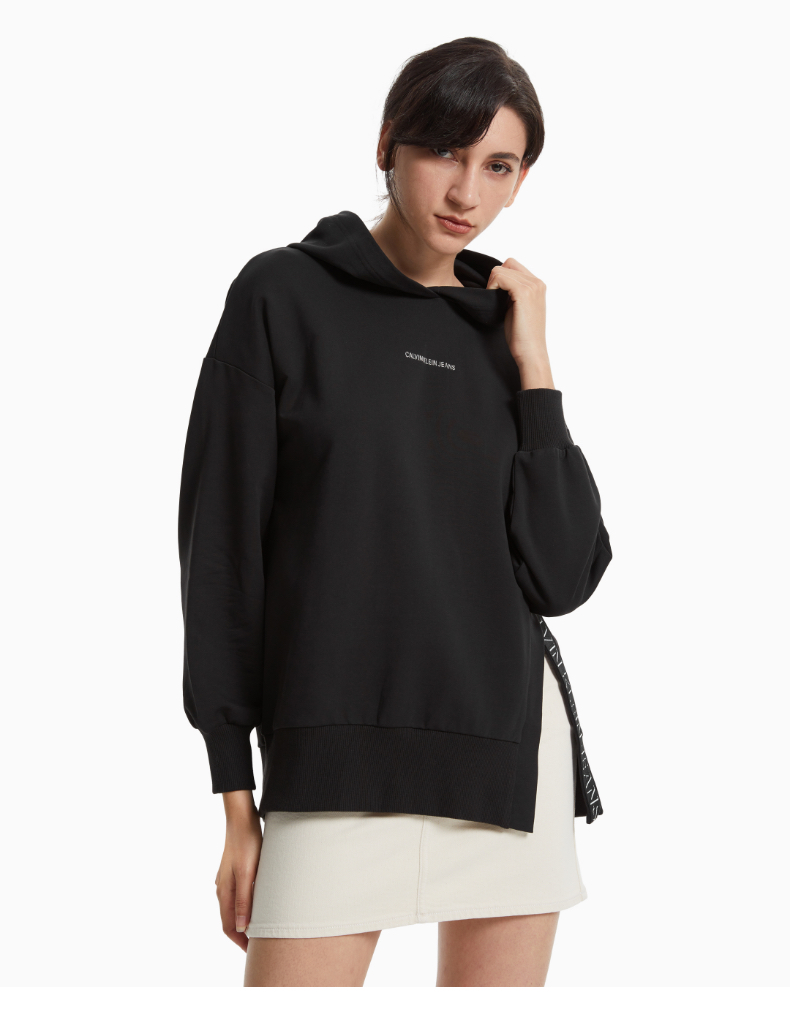 CK Jeans 2021秋冬新款女装时尚立体印花织带套头连帽卫衣J217431