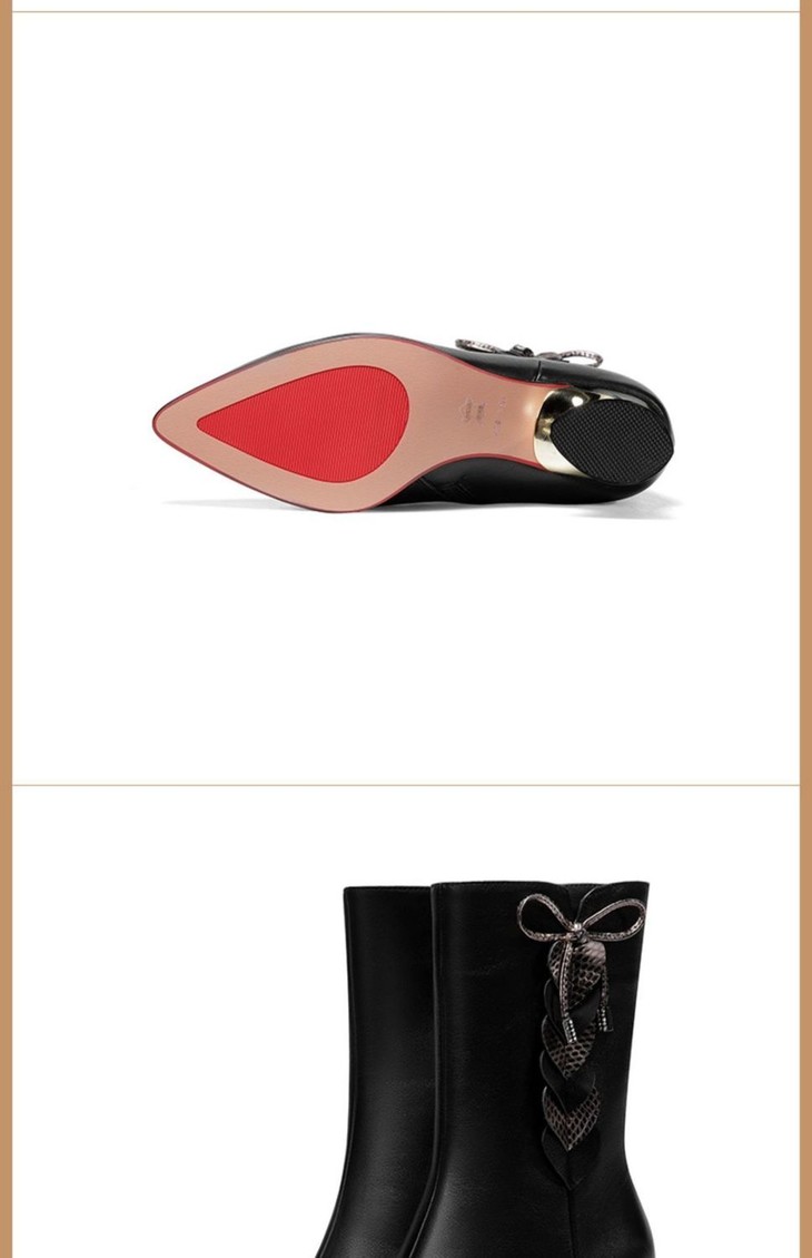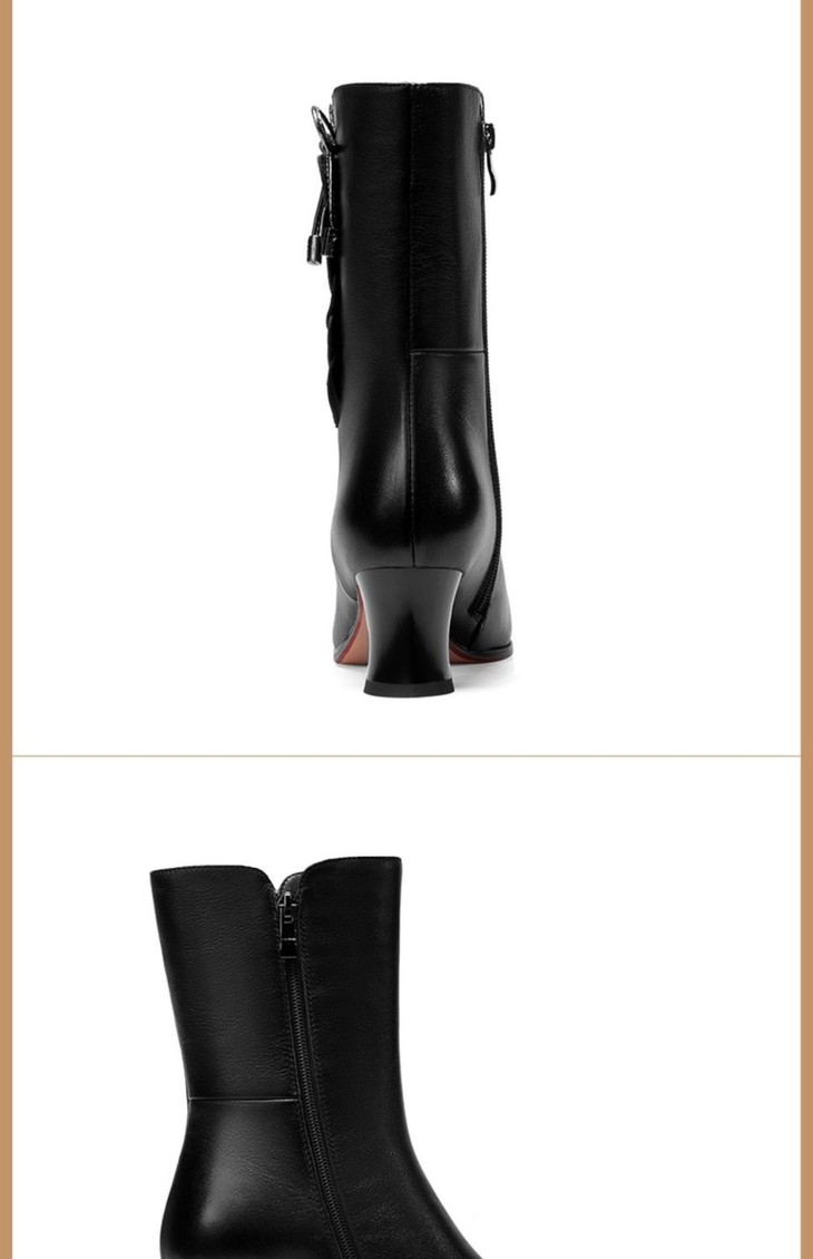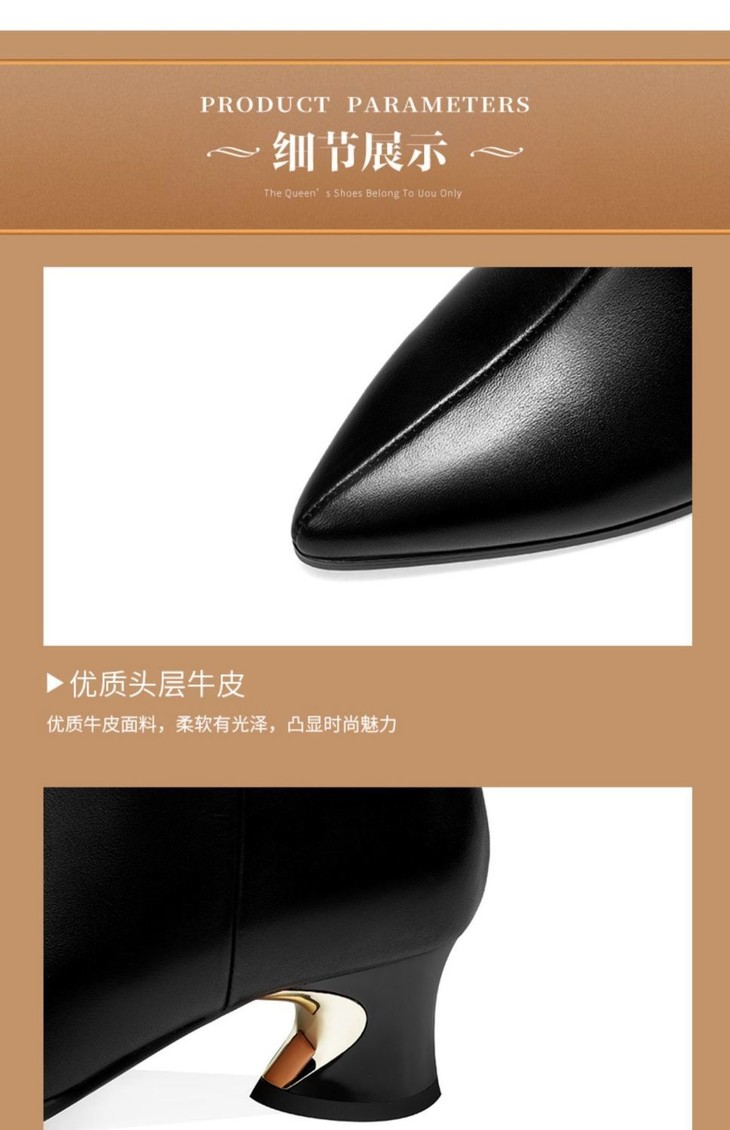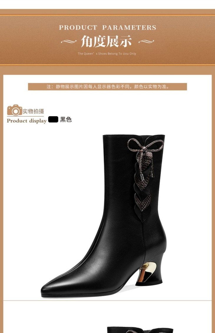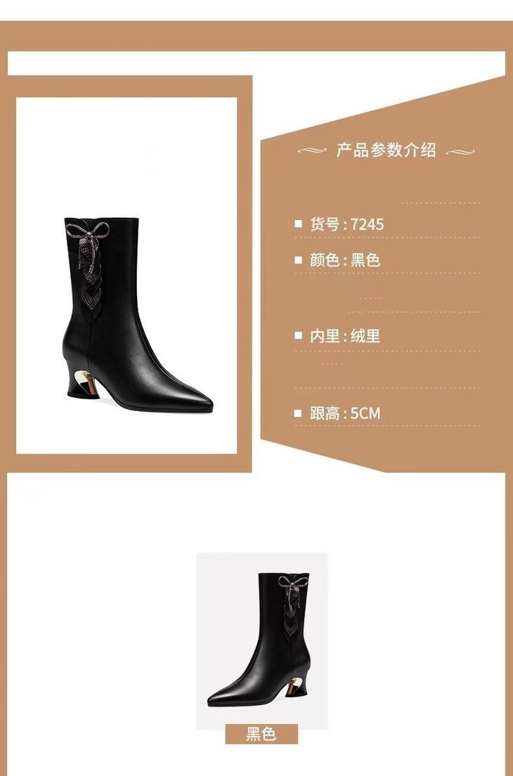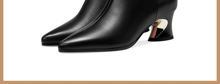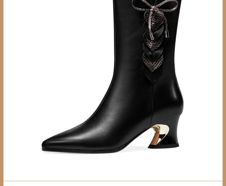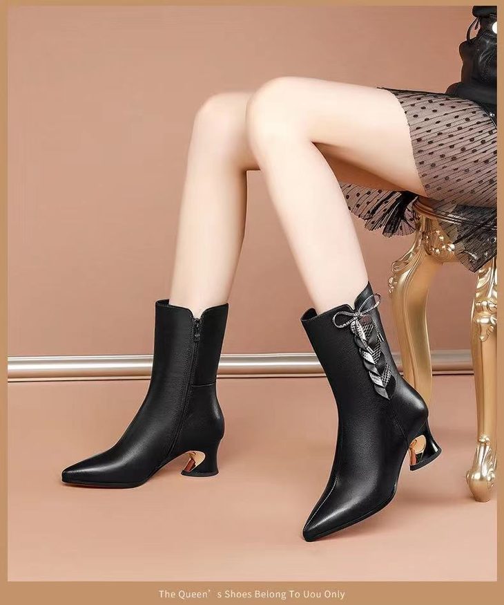 TZW-全牛皮冬季粗跟中筒靴女尖头中跟侧拉链马丁靴中靴