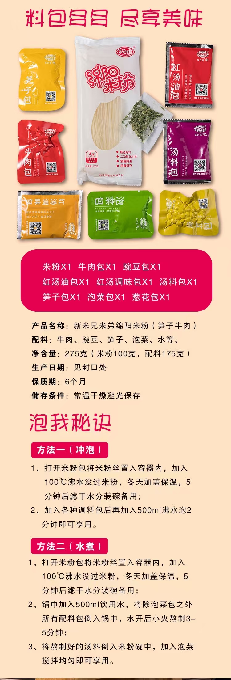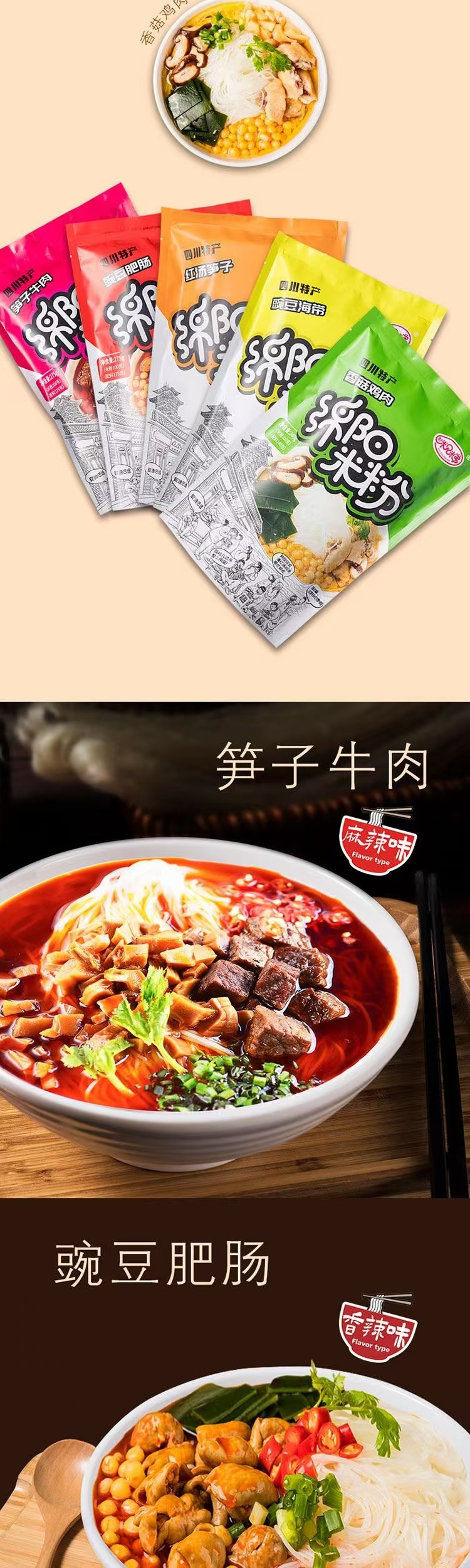 四川特色 绵阳米粉 鲜香味美 五种口味 免煮大口嗦粉