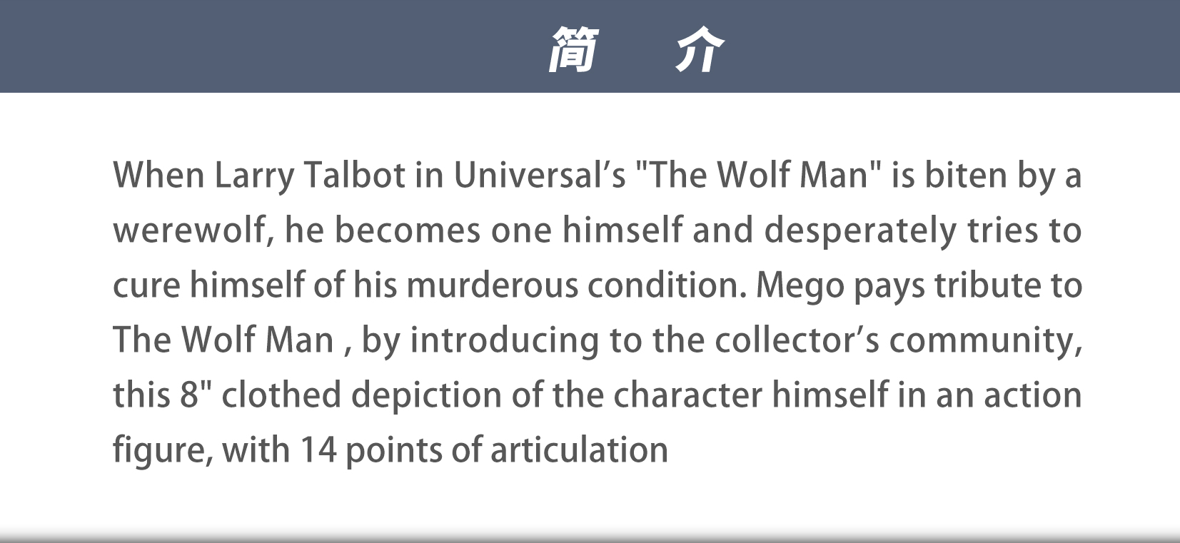 现货 Mego 环球怪物 狼人 Universal Wolfman 挂卡 8英寸