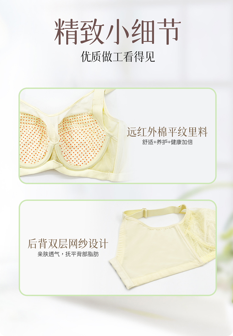 贝佳人新品花纹蕾丝调整型文胸无钢圈零束缚美背内衣透气聚拢BW952022