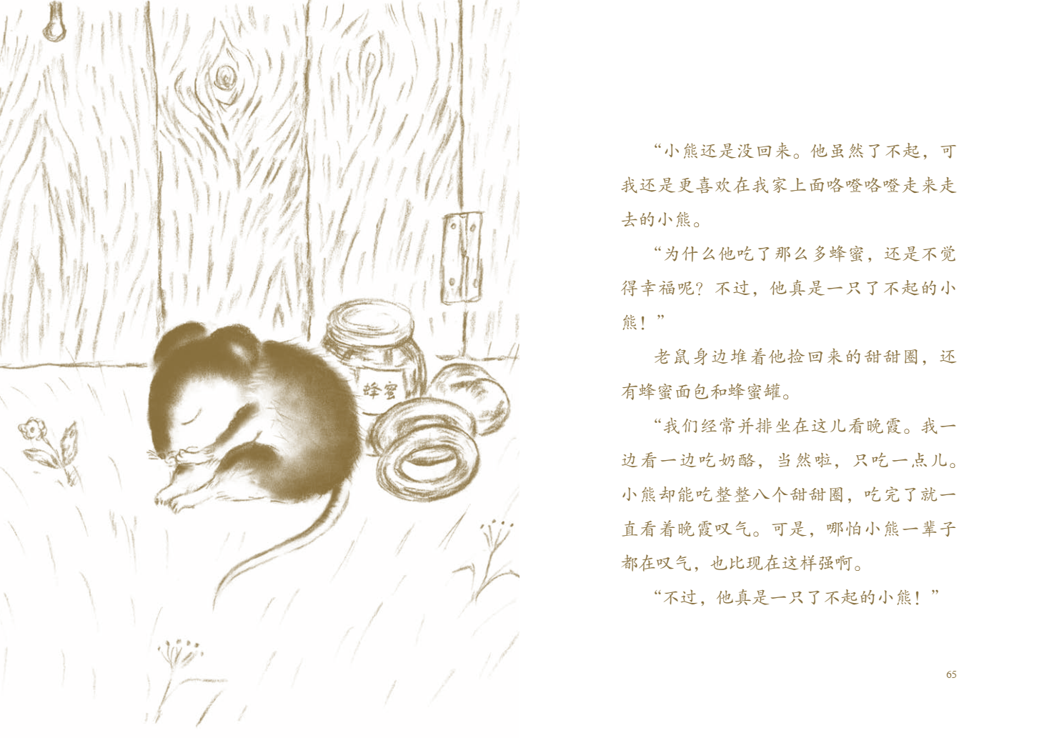 “为什么他吃了那么多蜂蜜,还是不觉得幸福呢?不过,他真是一只了不起的小熊!”
