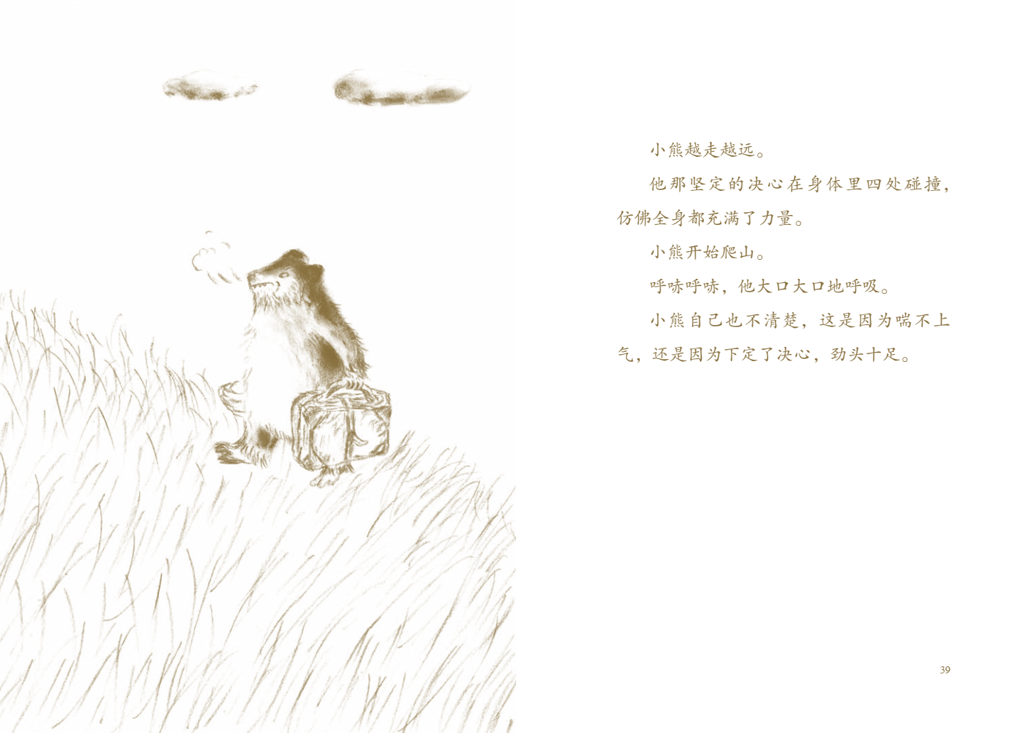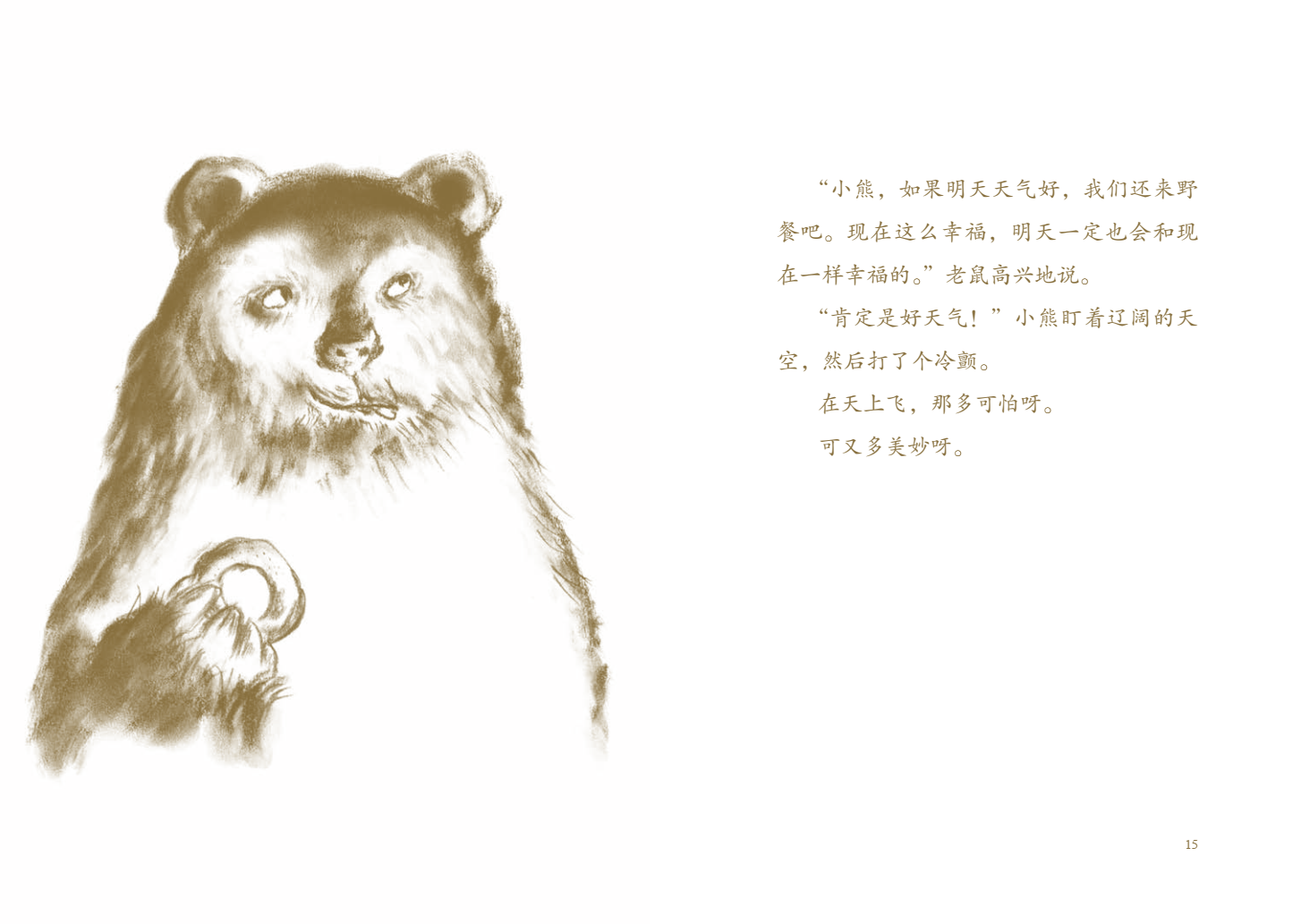 “小熊还是没回来呀。他虽然了不起,可我还是喜欢在我家上面咯噔咯噔走来走去的小熊。