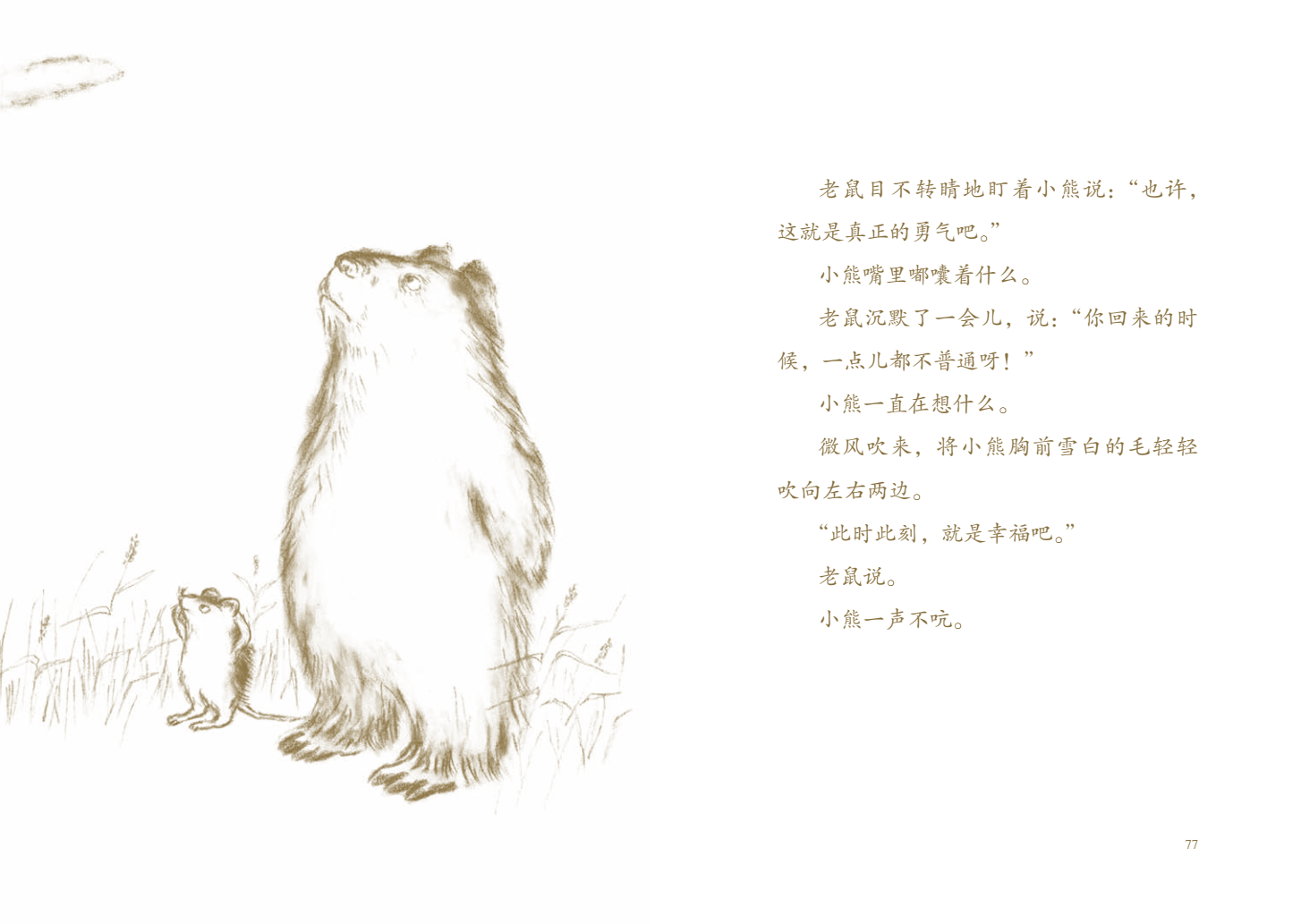 老鼠目不转睛地盯着小熊说:“那***是真正的勇气呀。”