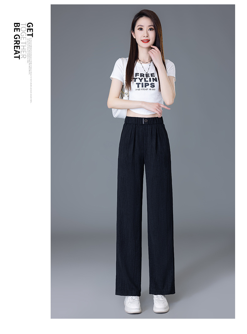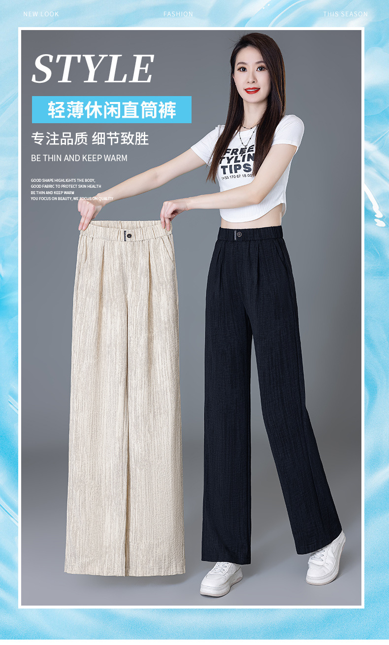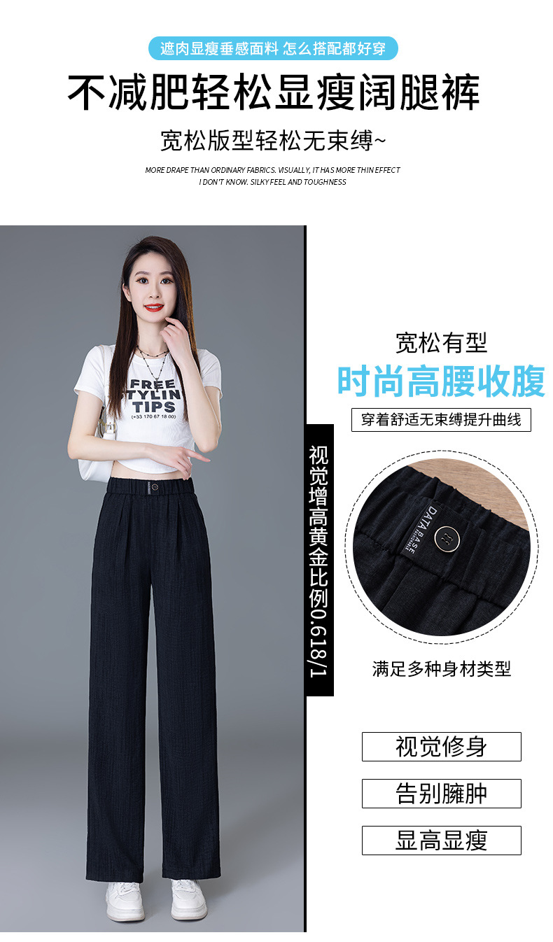 雀说薄款窄版阔腿裤女新款高腰显瘦垂感直筒裤显瘦休闲裤AL2502