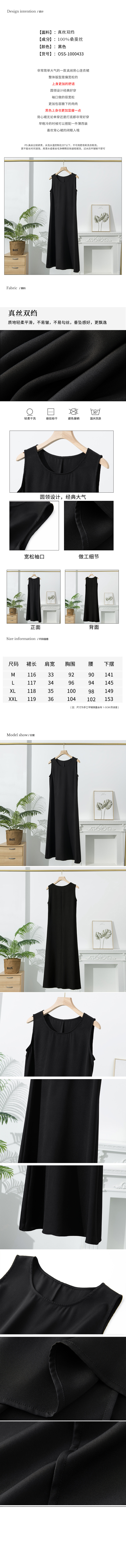 丁摩 真丝连衣裙女夏季黑色桑蚕丝长裙圆领无袖背心裙长款内搭3W0259 (Q122077)