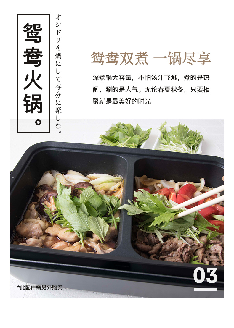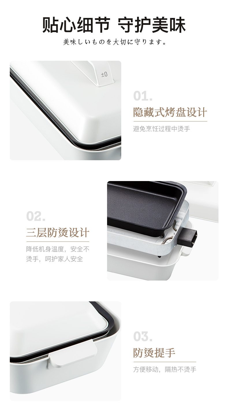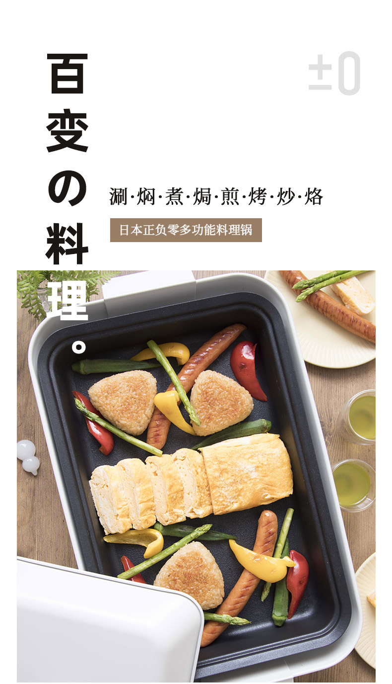 日本正负零家用多功能料理锅电火锅烧烤一体锅蒸煮电炉网红早餐锅