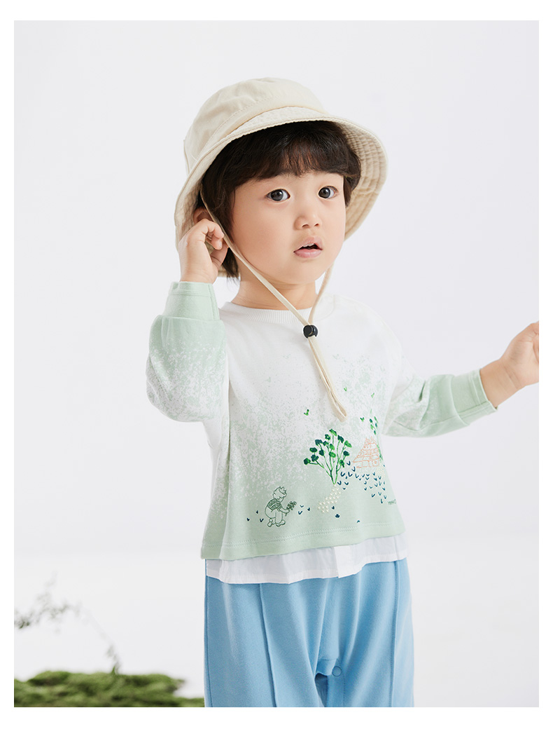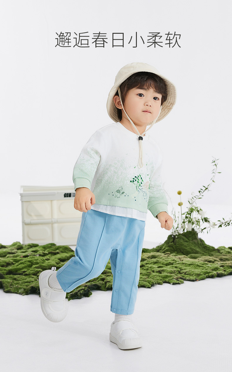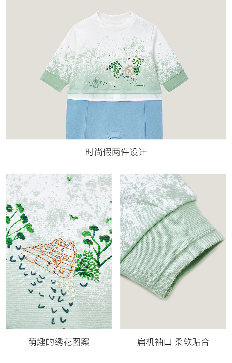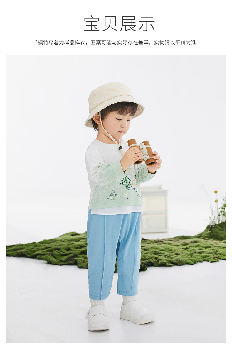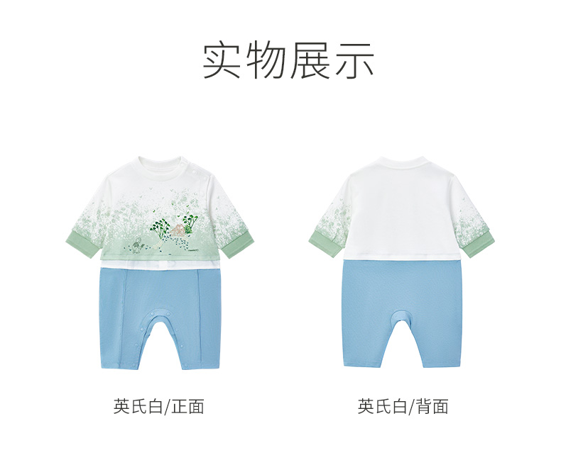 【商场同款】英氏婴儿连体衣春装男宝假两件新生儿外出服哈衣爬服