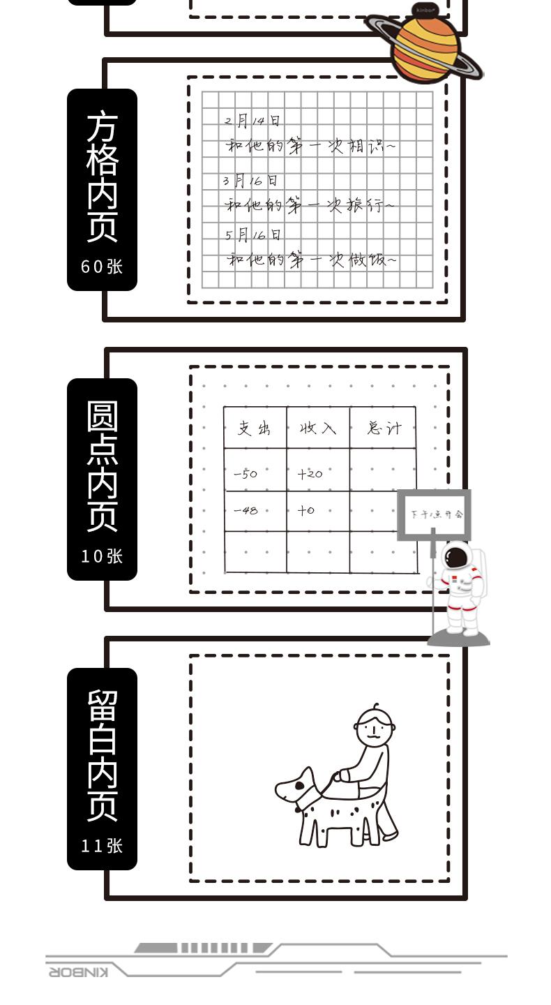 【广博】kinbor探索银河手账文具盒套装黑色钢笔手帐笔记创意计划本