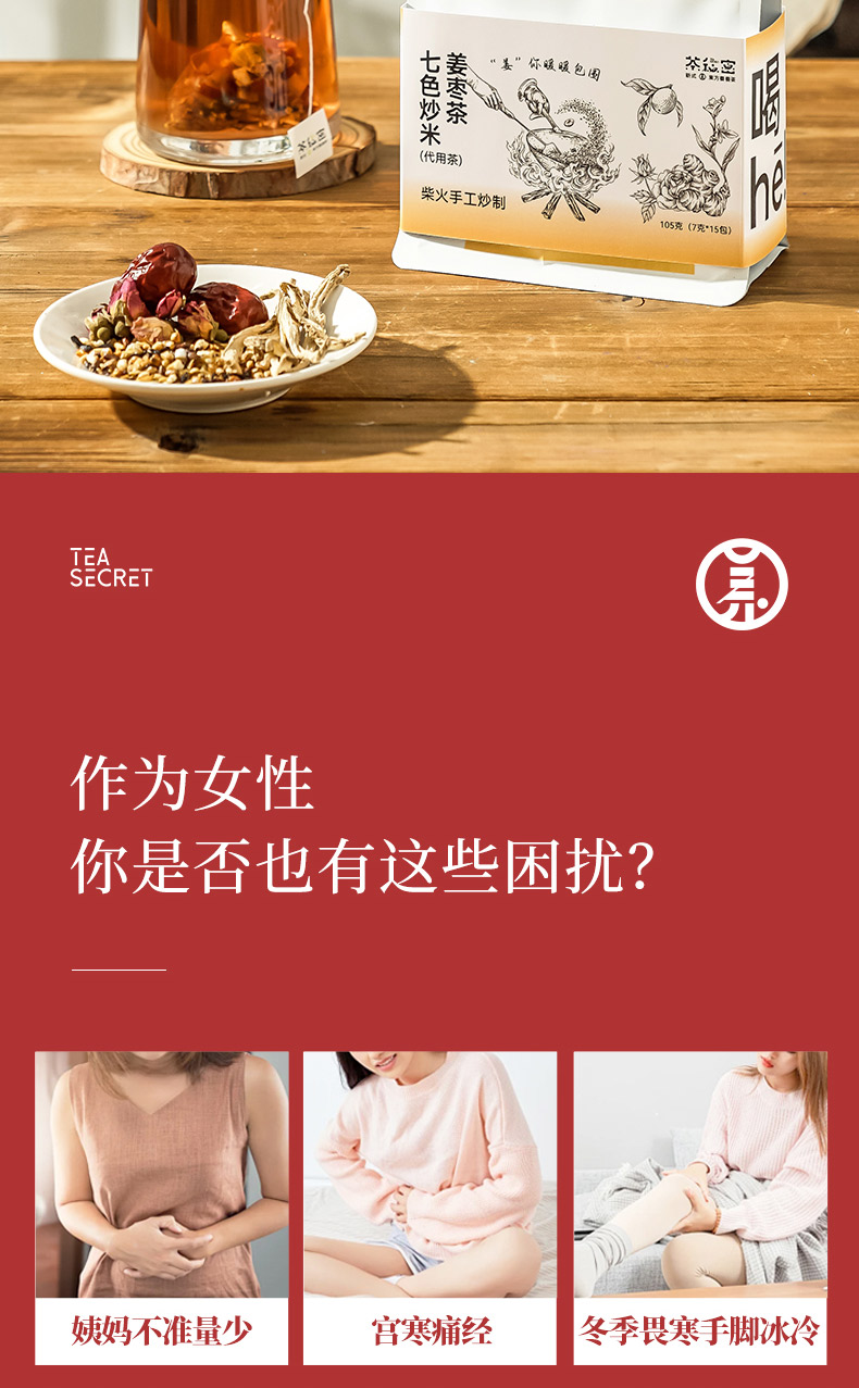 茶秘密 姜枣茶 7克*15包/袋 I 甄选十味好原材 古法柴火炒制 四季暖身常备