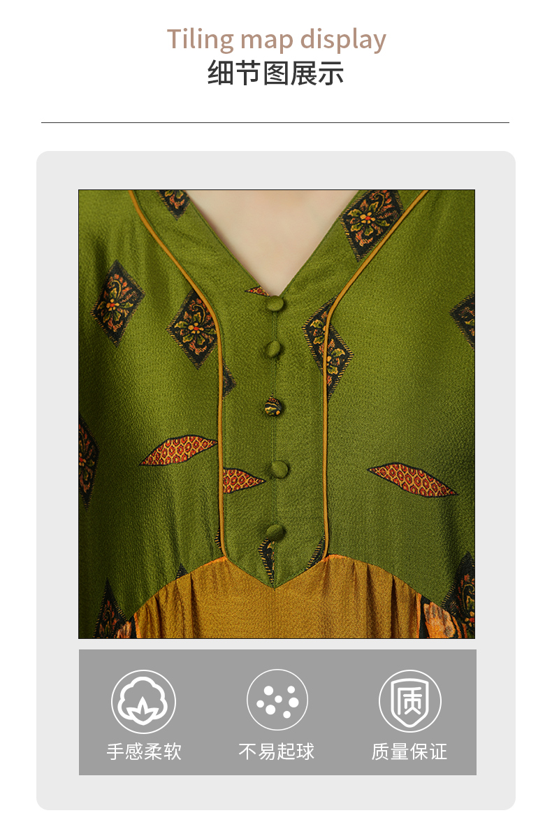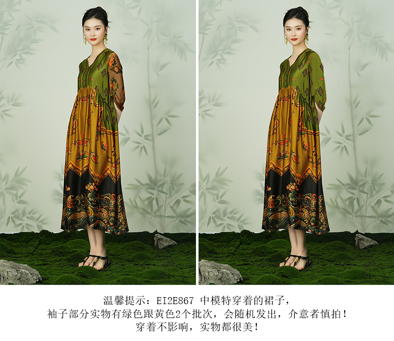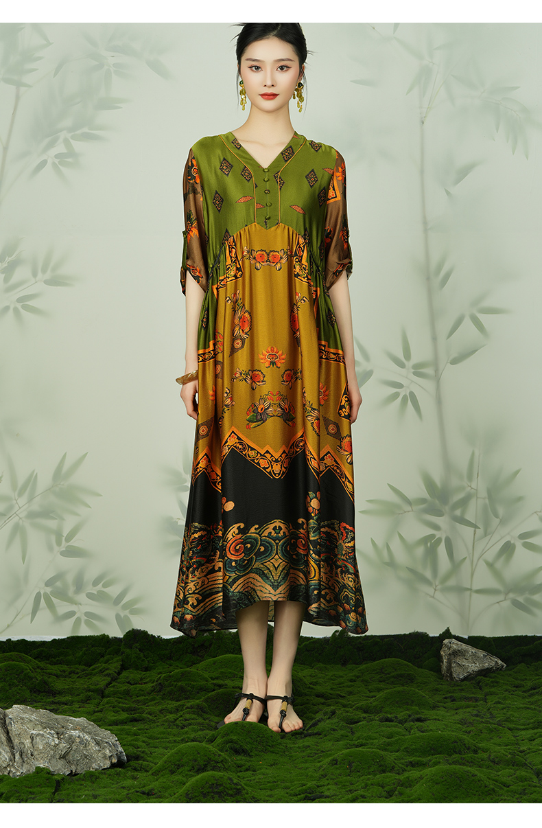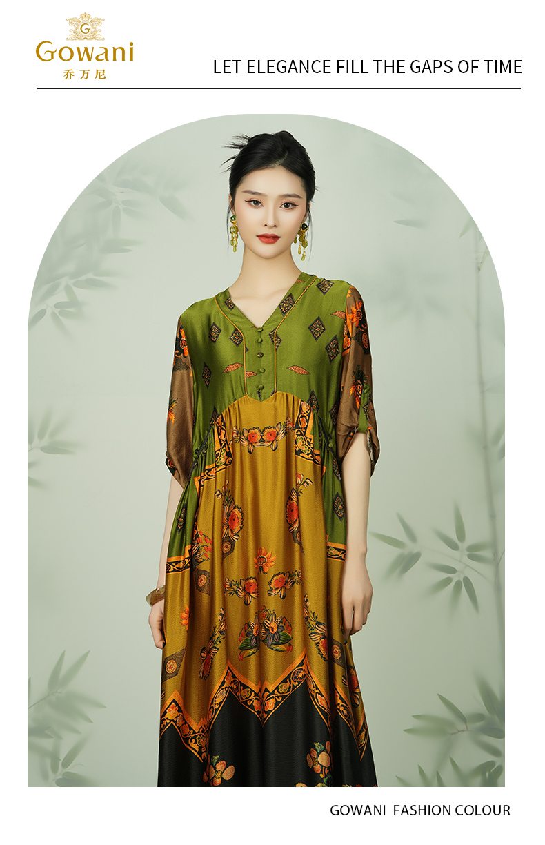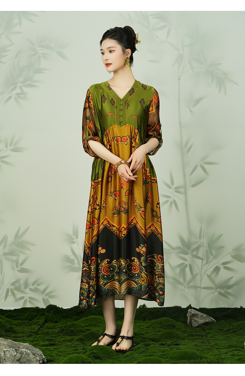 乔万尼真丝宽松长款V领印花国风连衣裙EI2E867