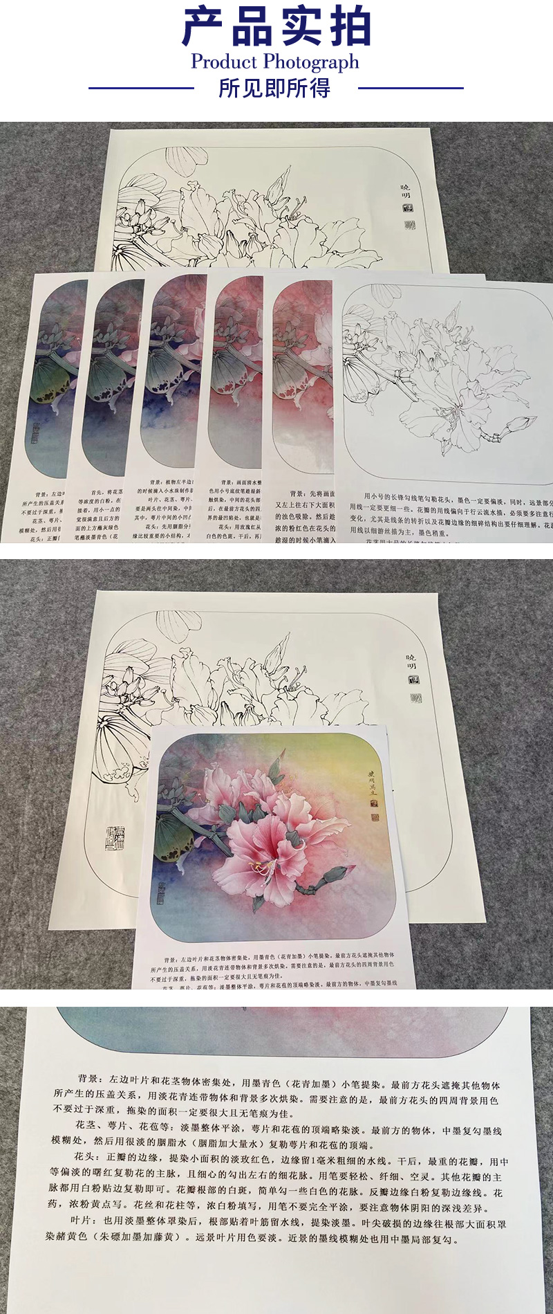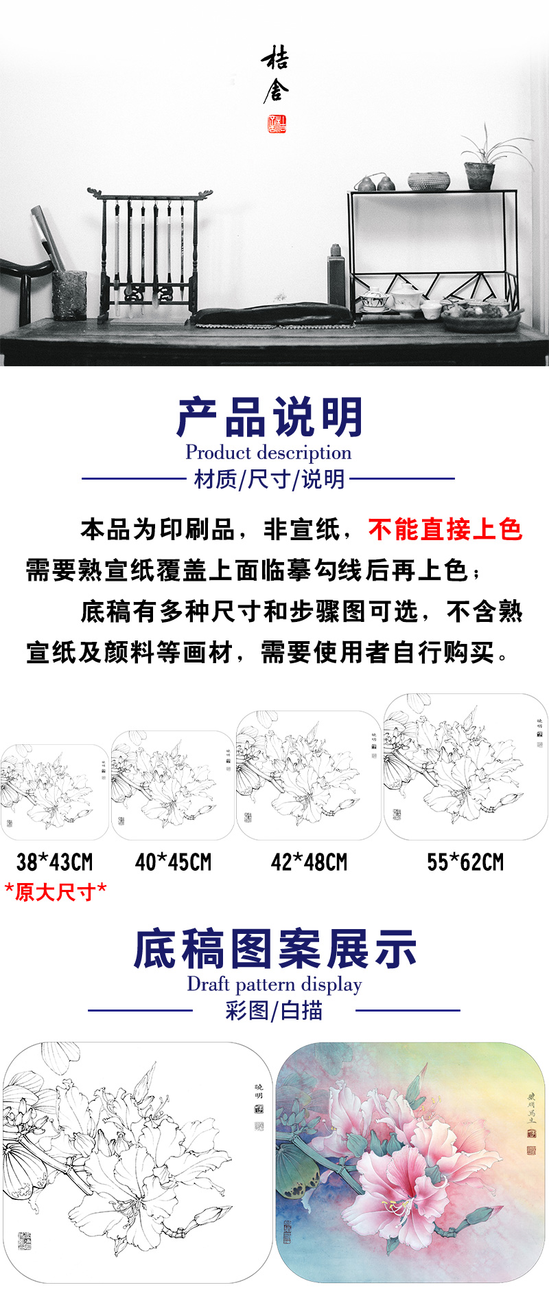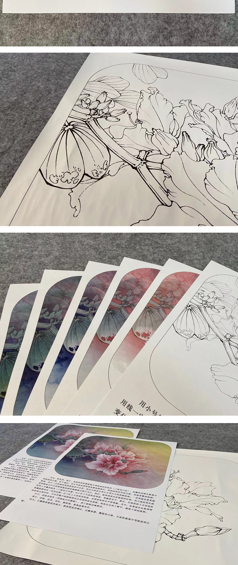 【有步骤、大彩图】工笔画白描底稿《粉紫荆》紫荆花花鸟线稿KG04