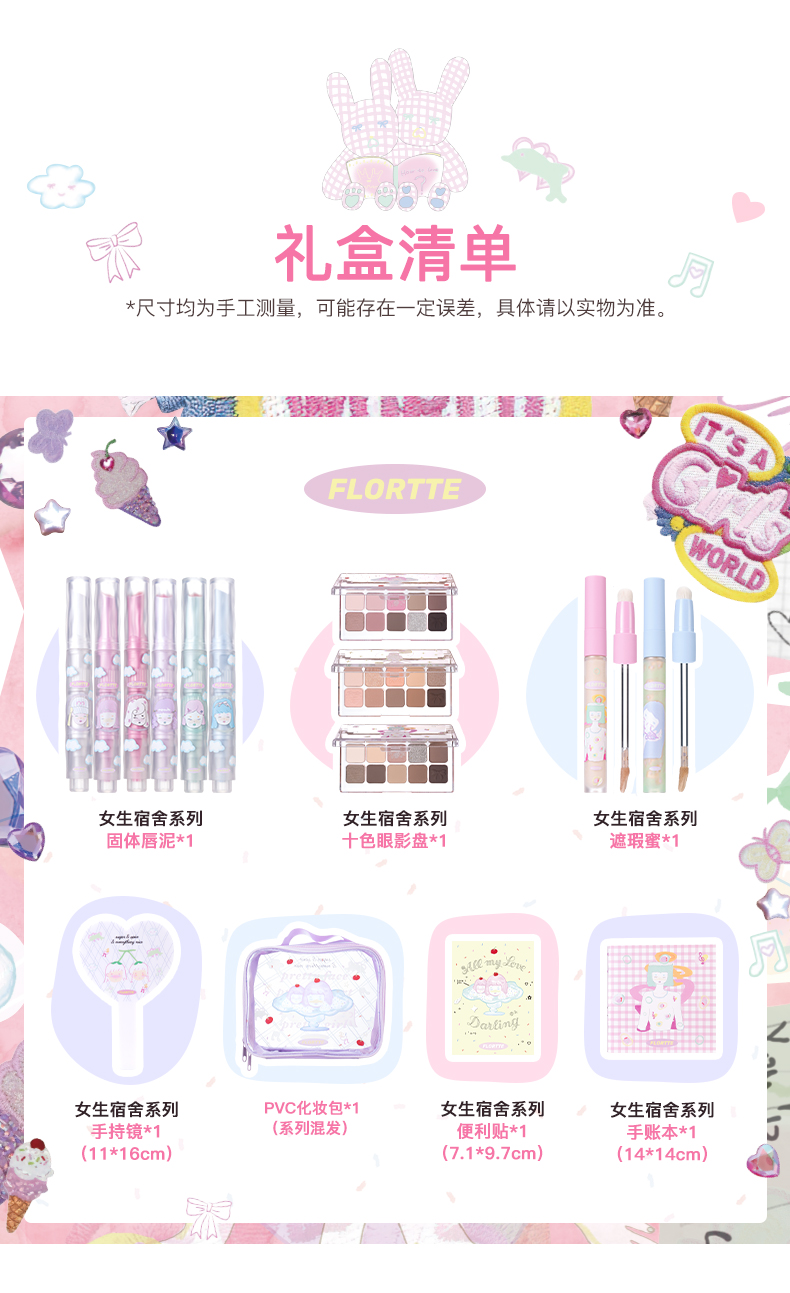 #【礼盒】FLORTTE/花洛莉亚Wackky女生宿舍系列唇泥眼影盘遮瑕蜜彩妆礼盒