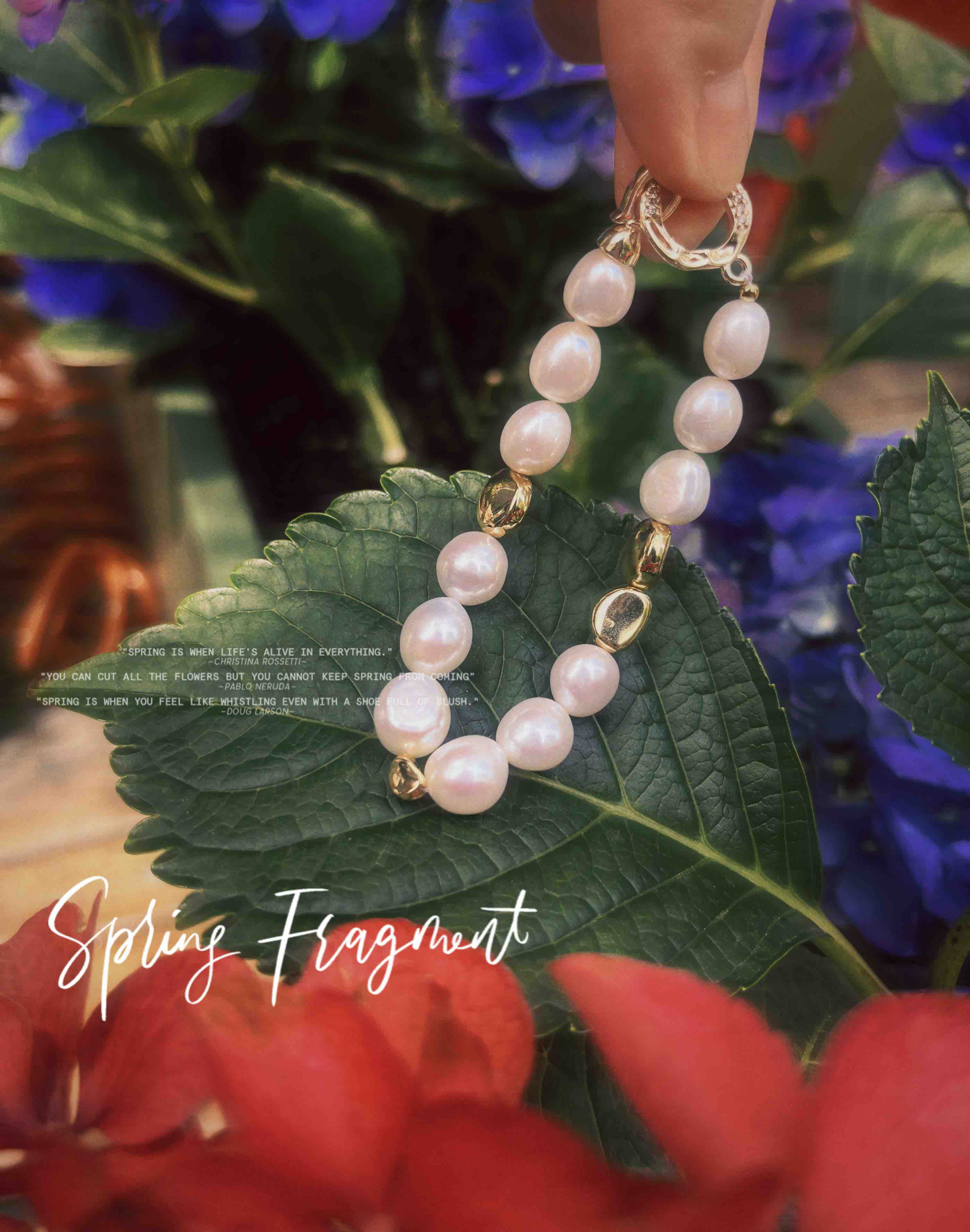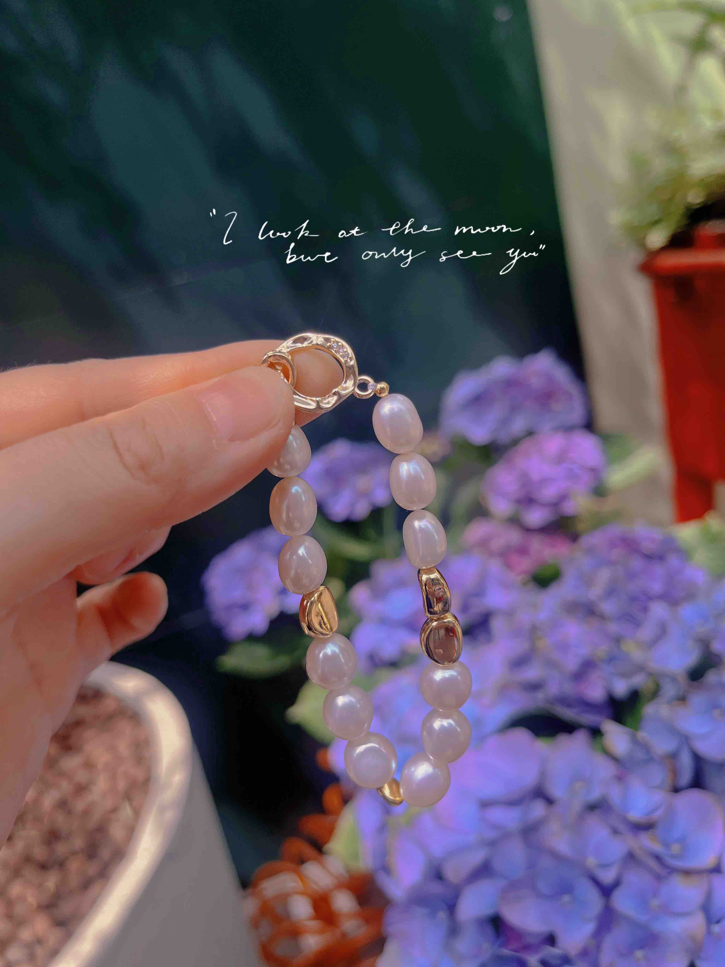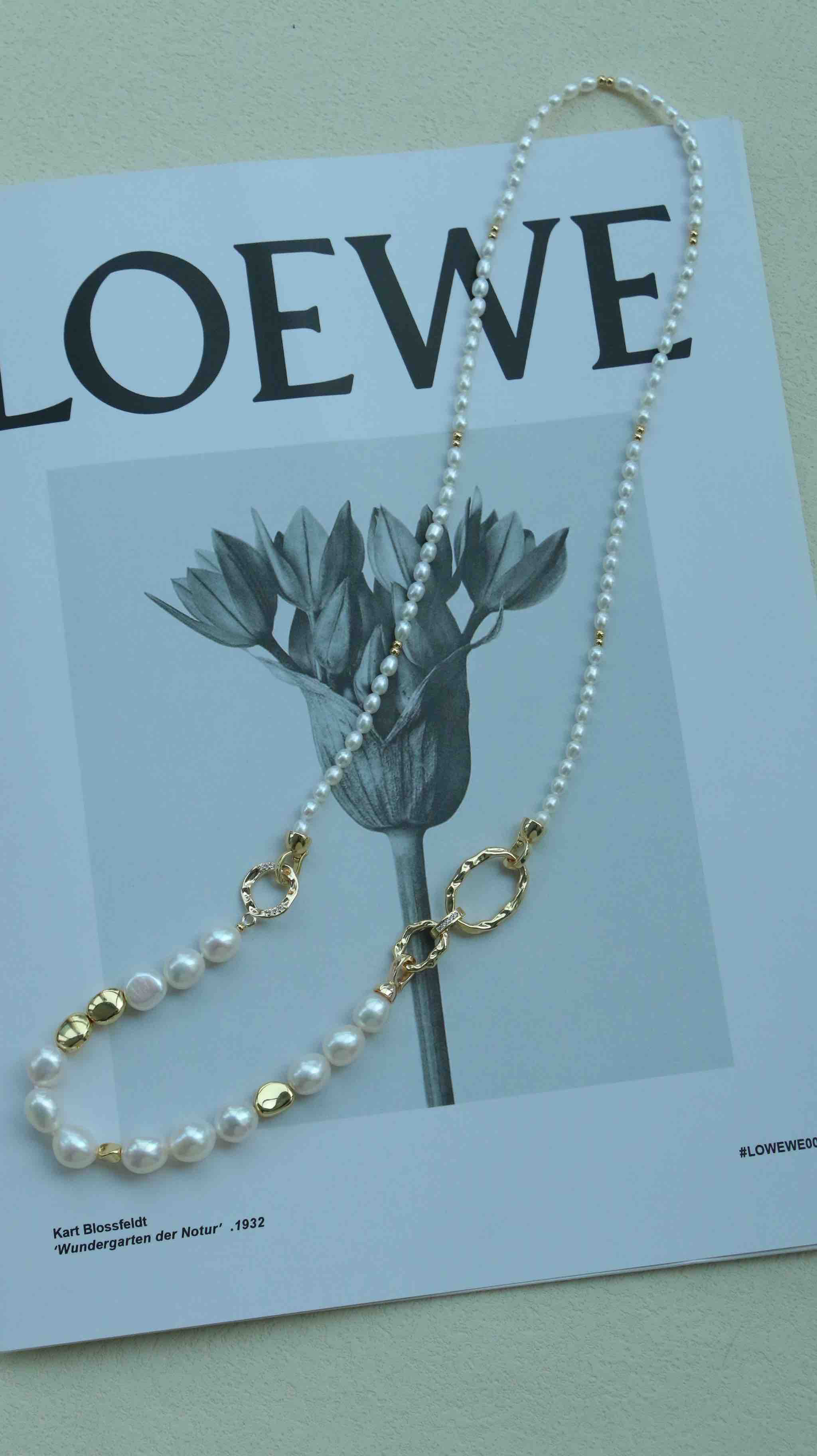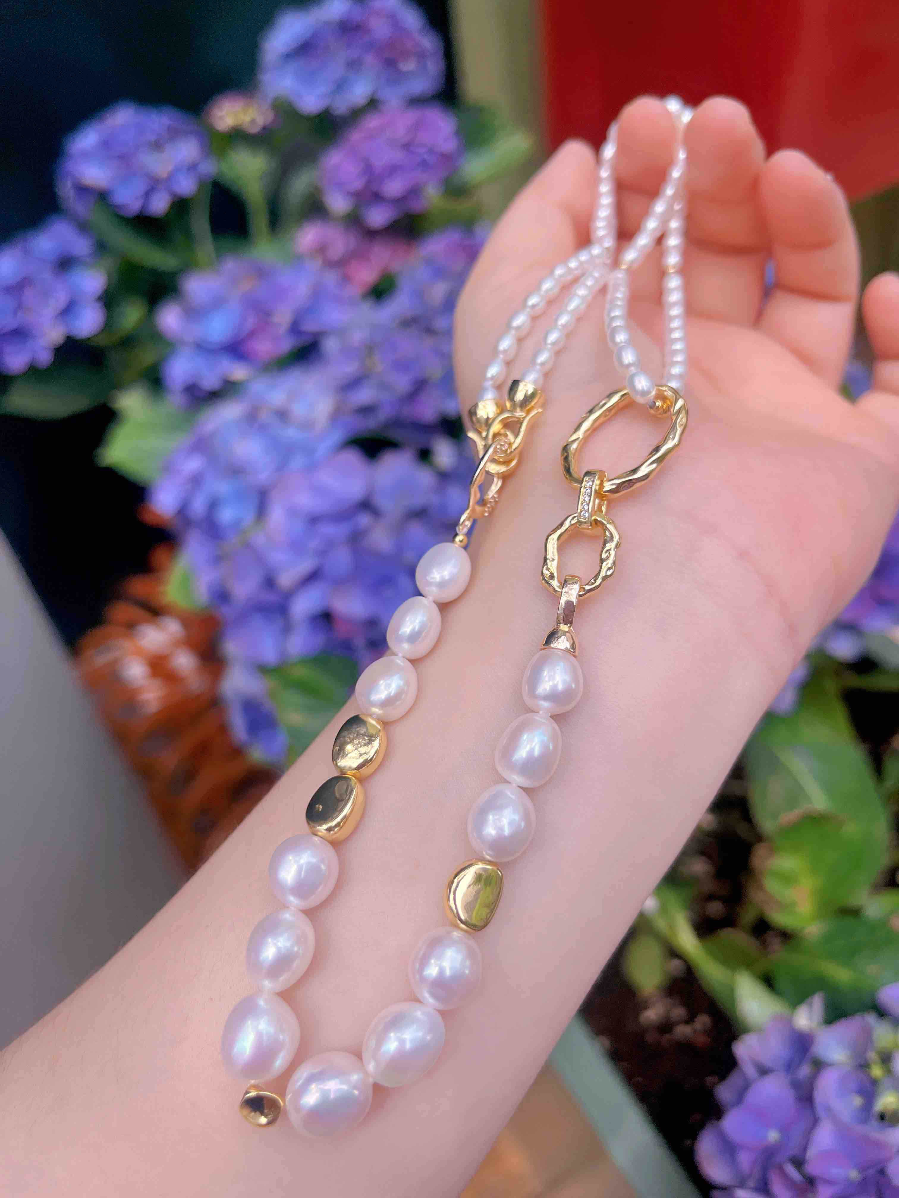 3-4mm精品小米珠 + 9-10mm异形淡水珠,可以有好几种不同的佩戴方式,手链,项链,长链。