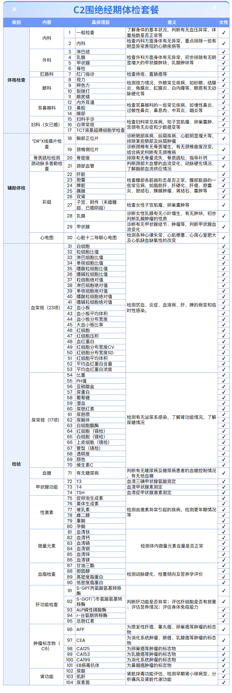 【女性|升级优选】含颈动脉多普勒+TCT+八彩超+性激素六项+甲功三项 C2