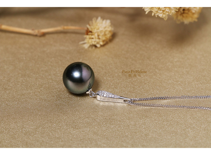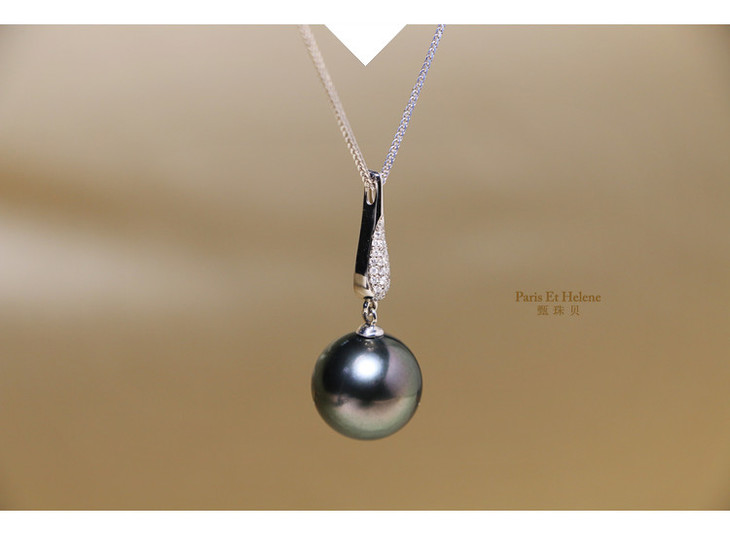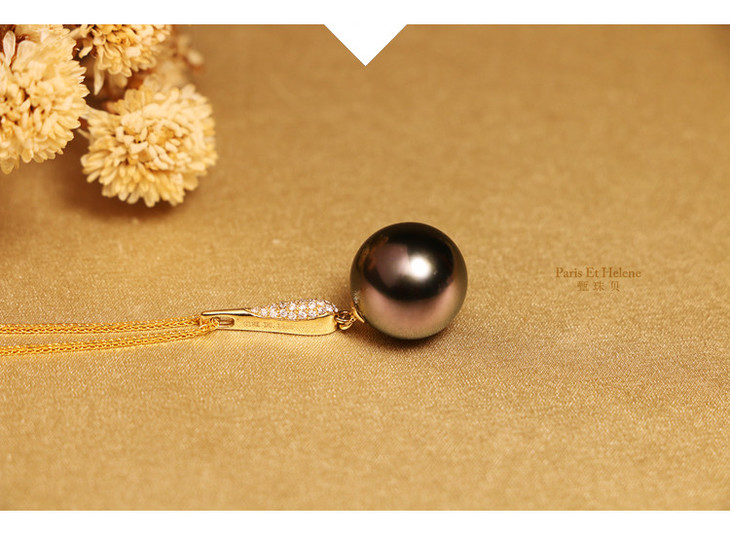 【定制·约10个工作日】甄珠贝 小爵士 18K金钻石镶嵌大溪地海水黑珍珠吊坠女12-13mm正圆