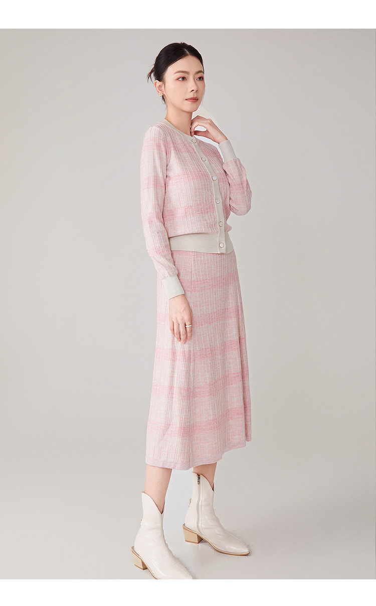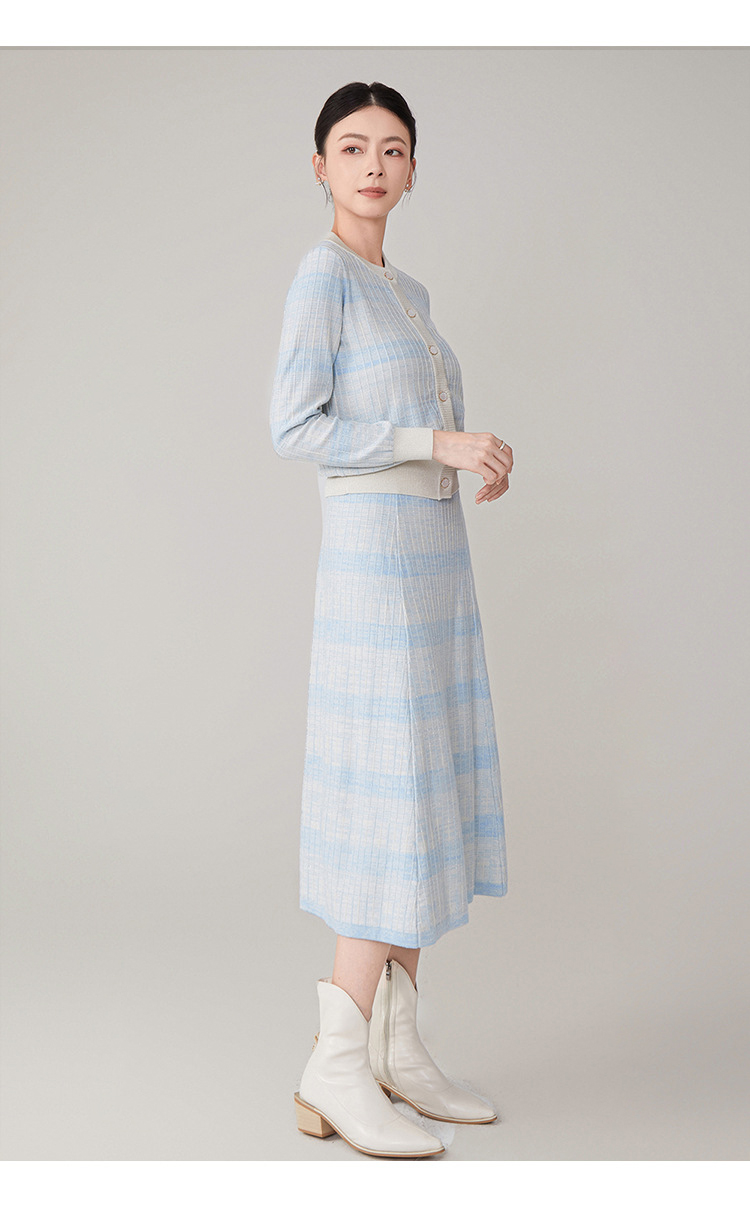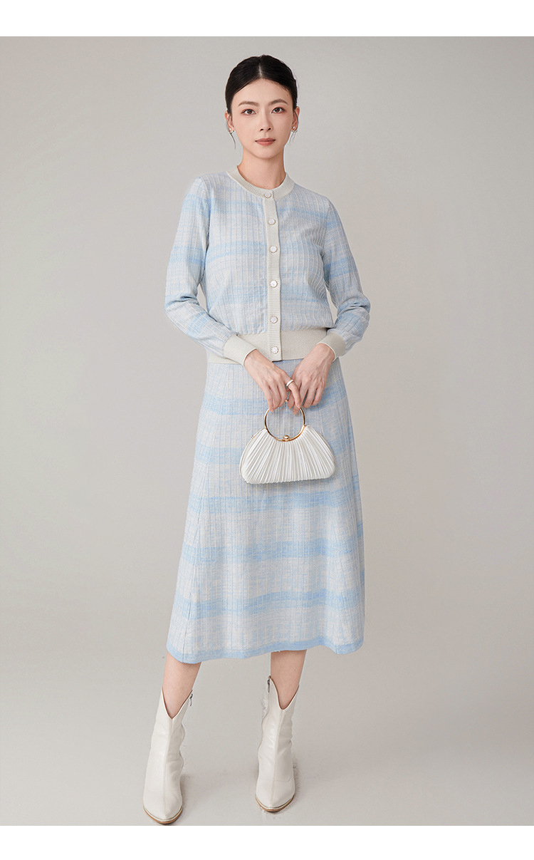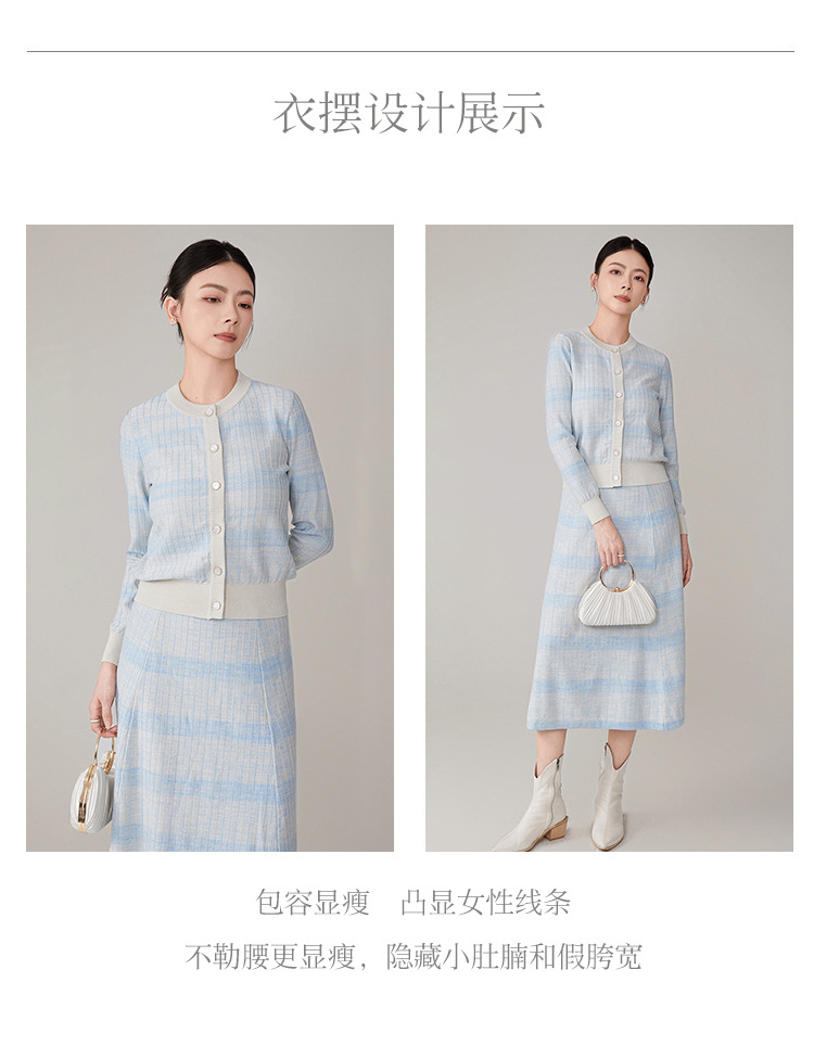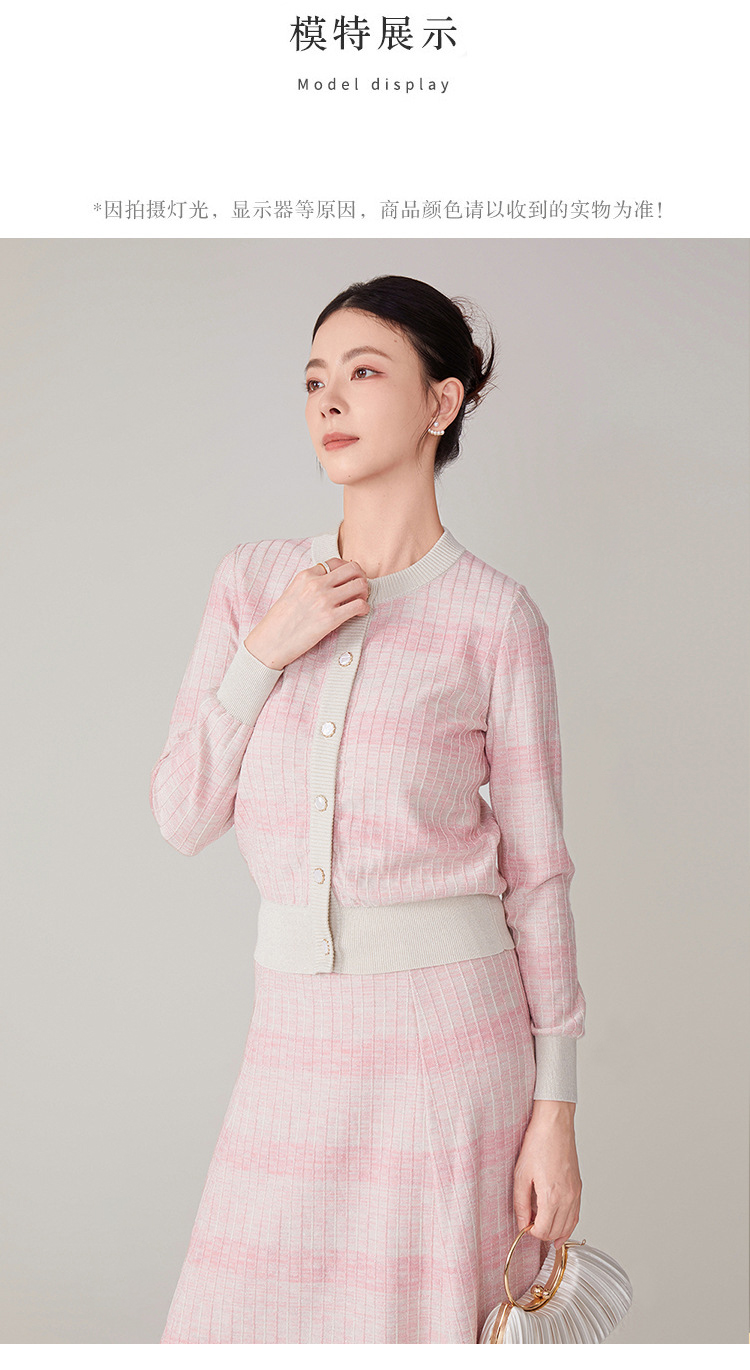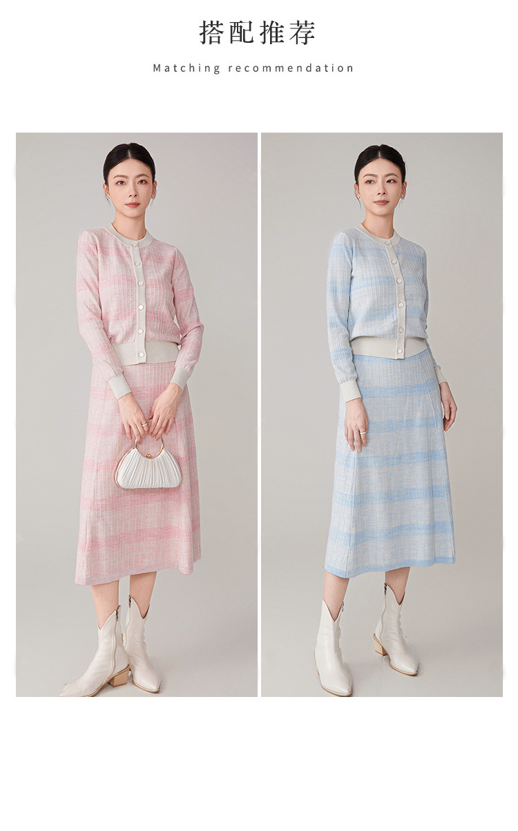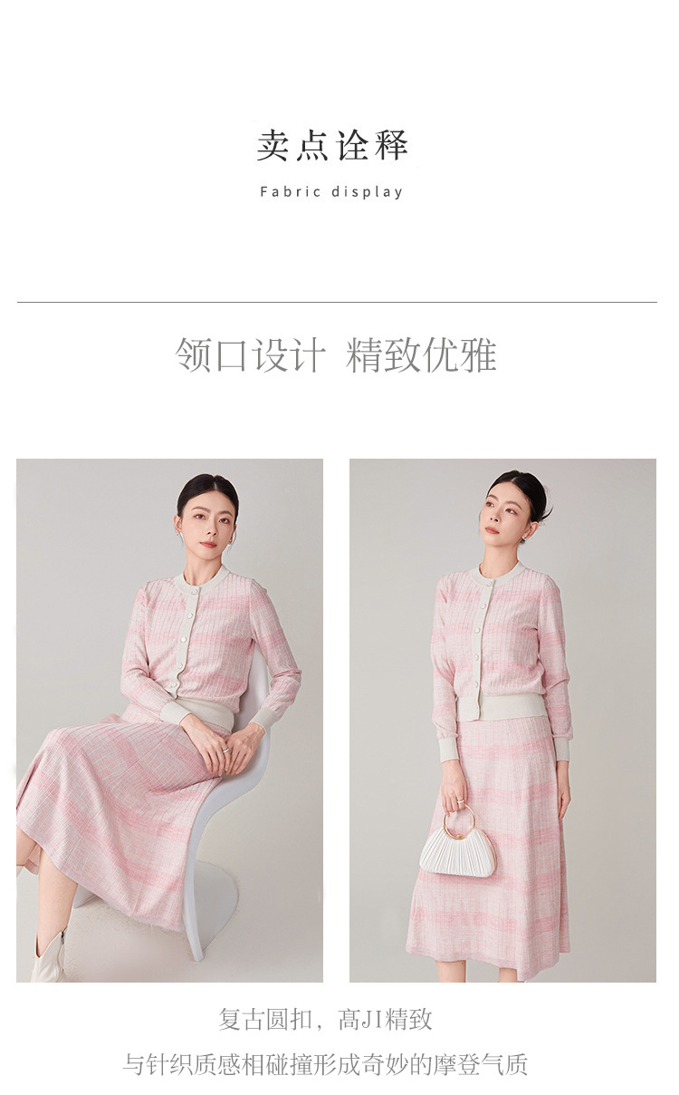 【hrf】全新升级【铂金会员404/天猫539/差价135】(33017) 洛诗琳2024初秋轻熟穿搭两件套小香风撞色羊毛针织套装裙