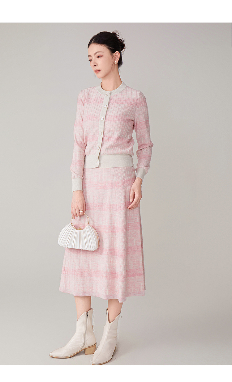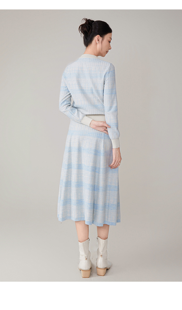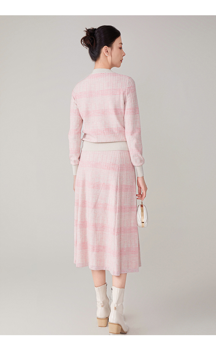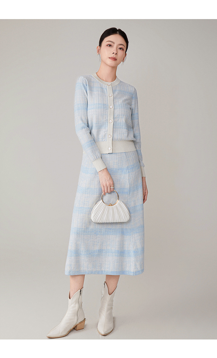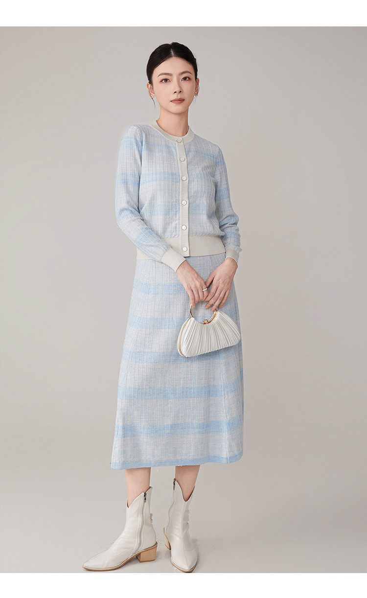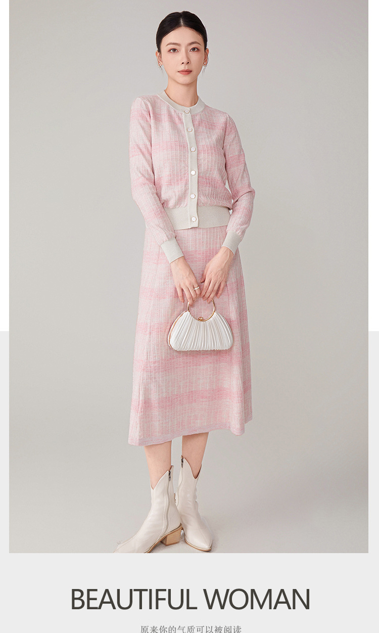 【hrf】全新升级【铂金会员404/天猫539/差价135】(33017) 洛诗琳2024初秋轻熟穿搭两件套小香风撞色羊毛针织套装裙