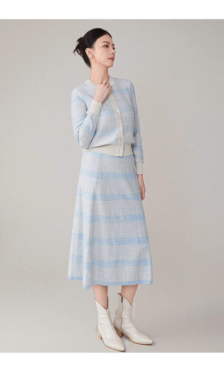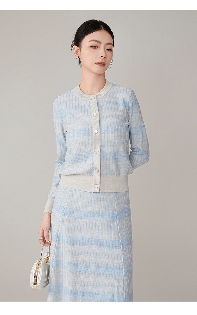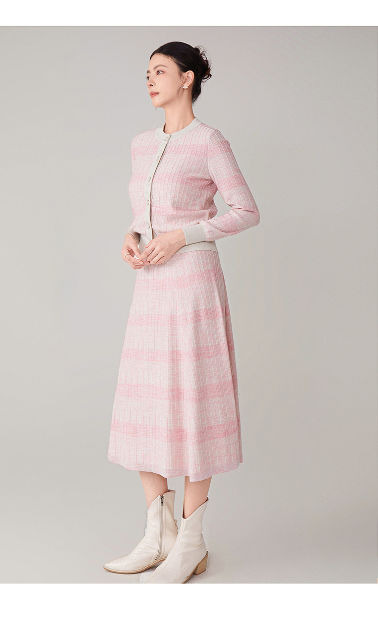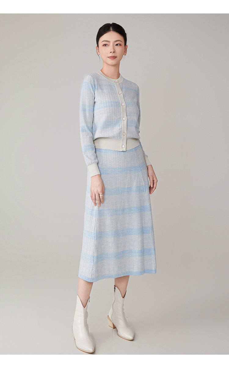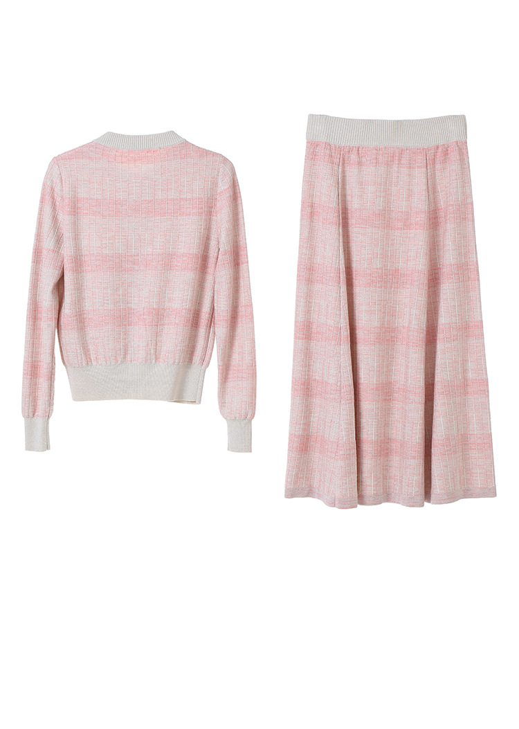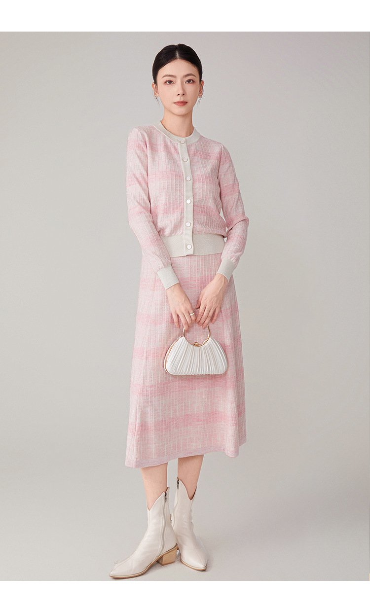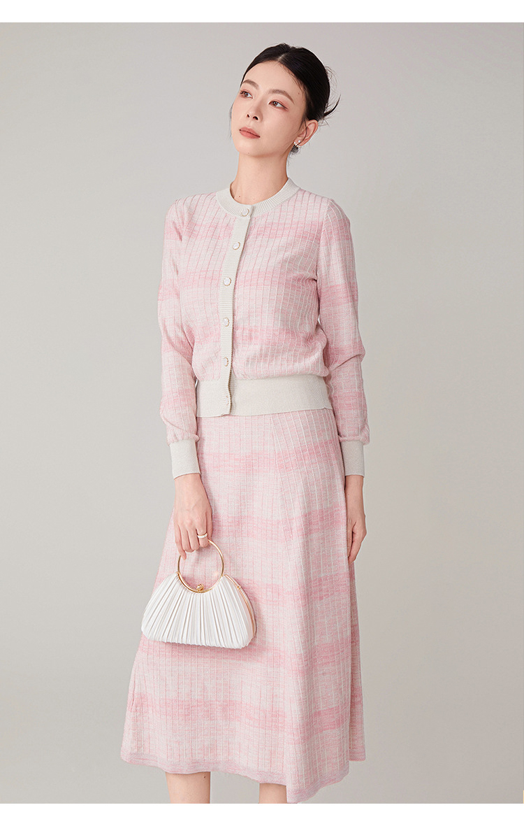 【hrf】全新升级【铂金会员404/天猫539/差价135】(33017) 洛诗琳2024初秋轻熟穿搭两件套小香风撞色羊毛针织套装裙