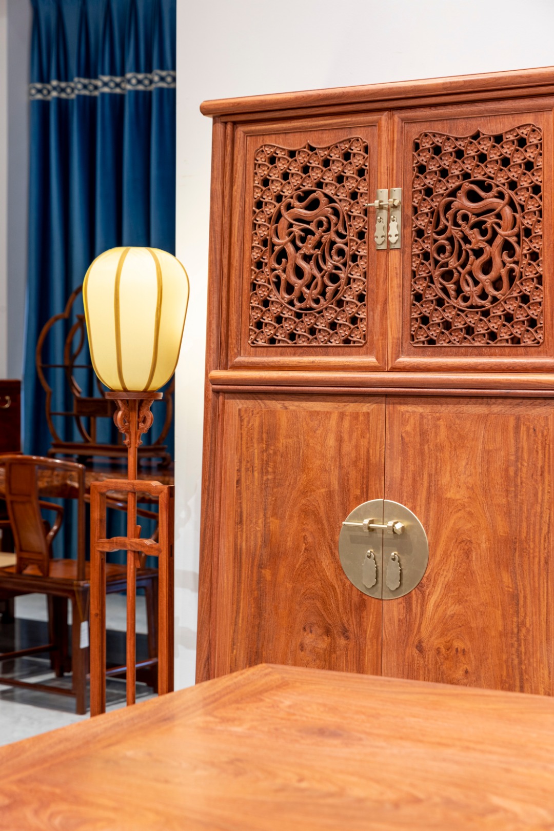 182 透雕梅龙 圆角柜:87.5*45.5*181.5 (底部92*45.5)(单个)
