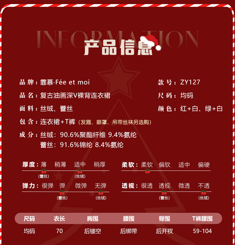 【情趣内衣】霏慕 复古油画深v裸背连衣裙ZY127
