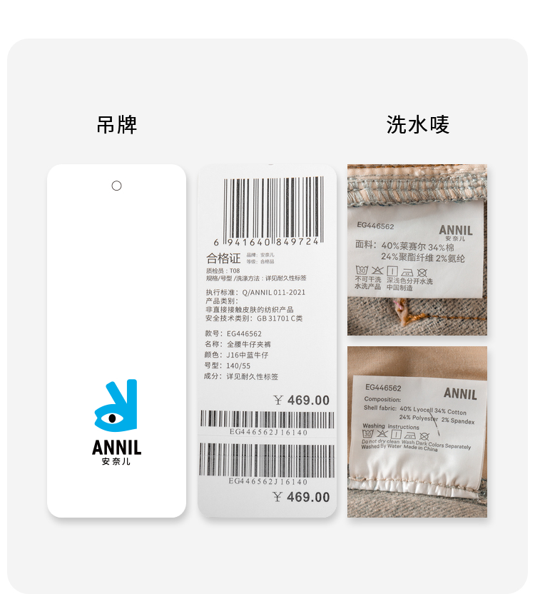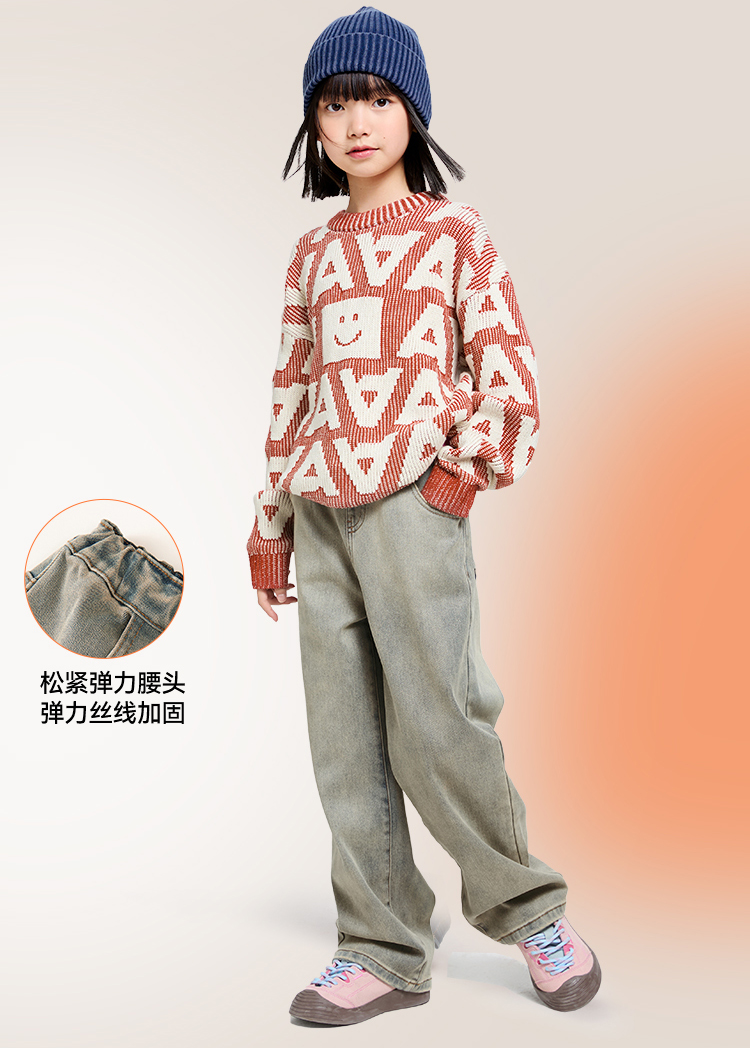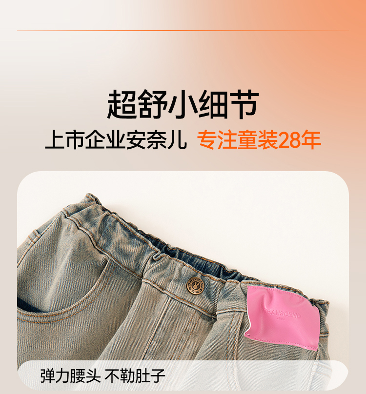 女童全腰牛仔夹裤冬季新款安奈儿童装EG446562