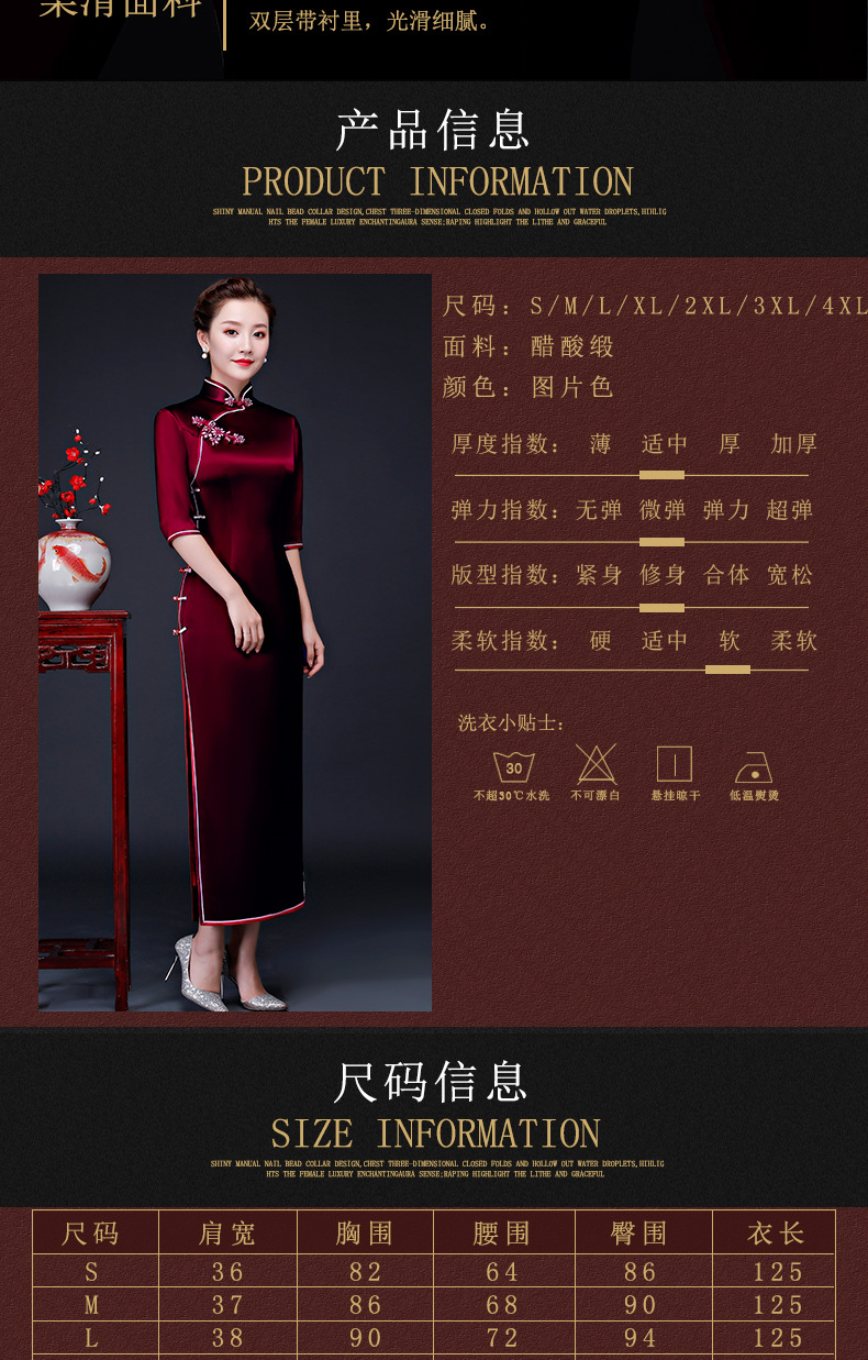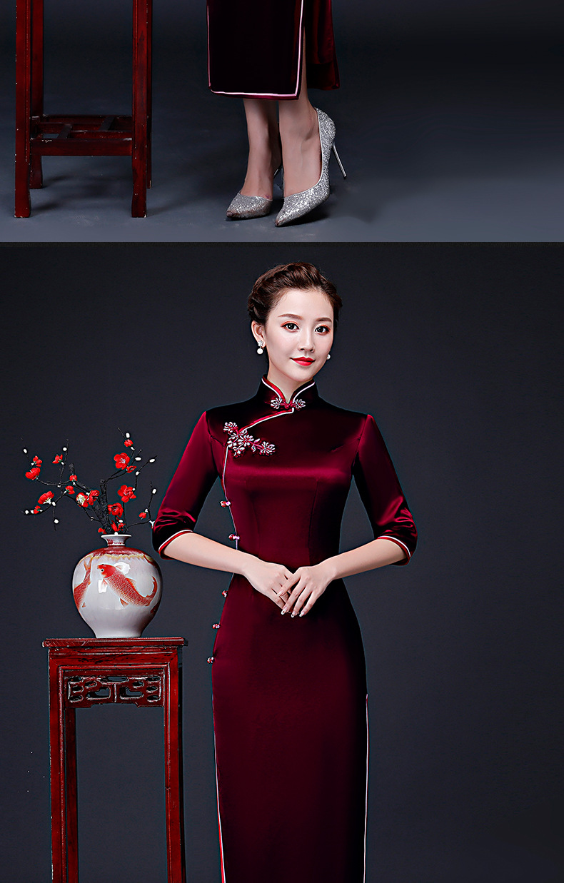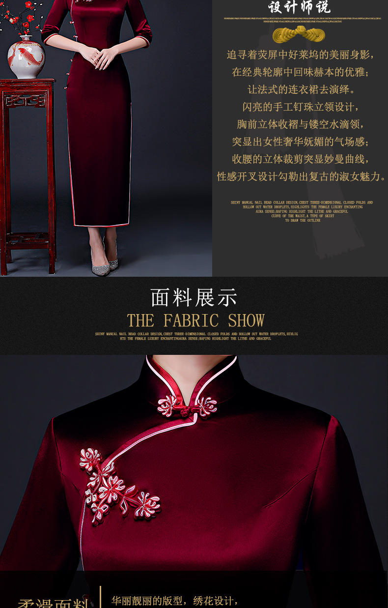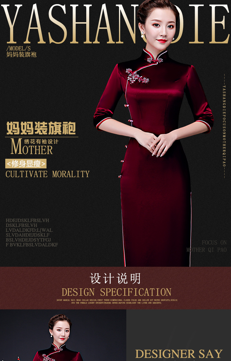 LHS-L06182妈妈装长款旗袍秋冬季喜婆婆婚礼旗袍裙婚宴服
