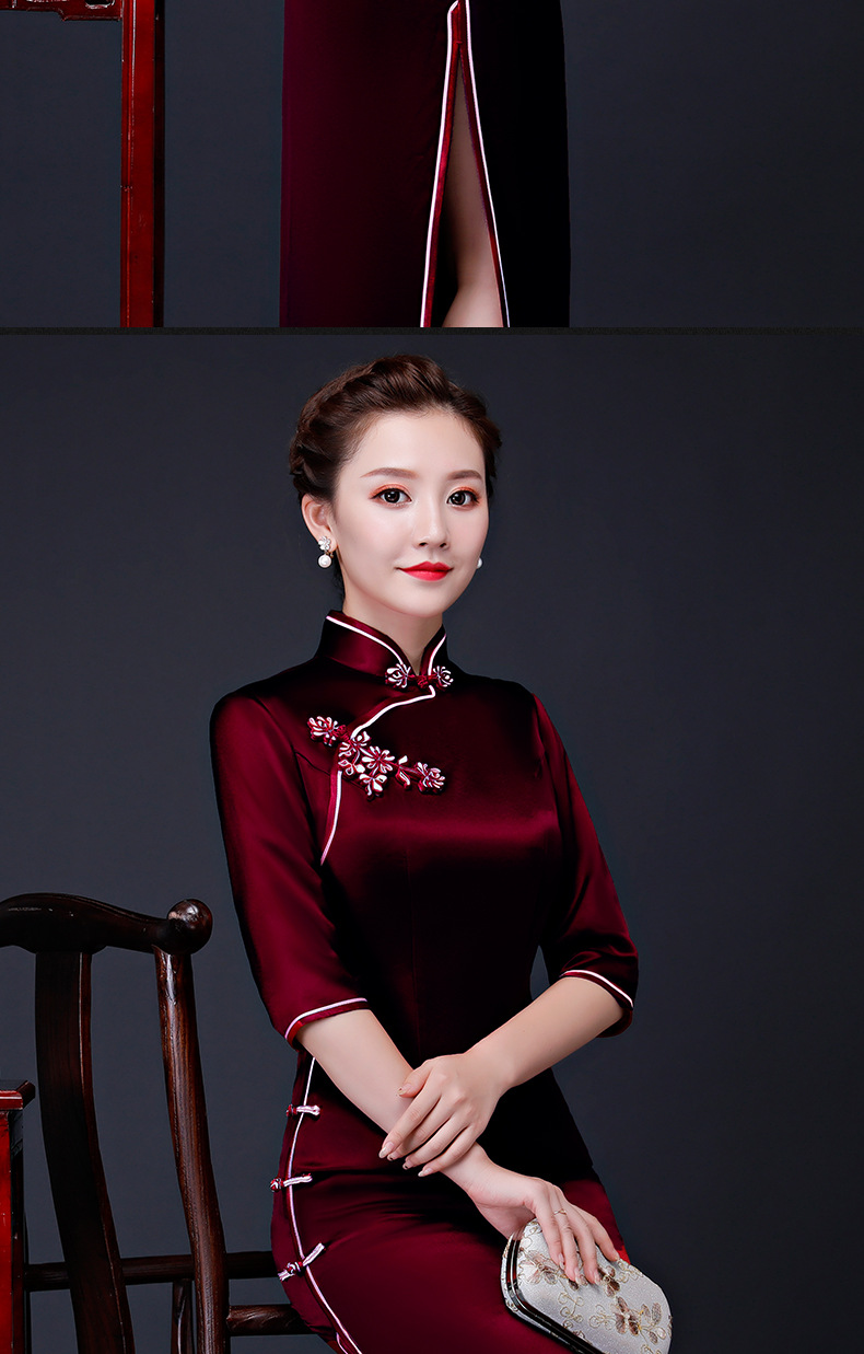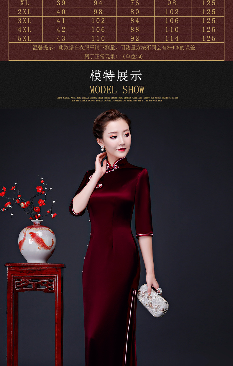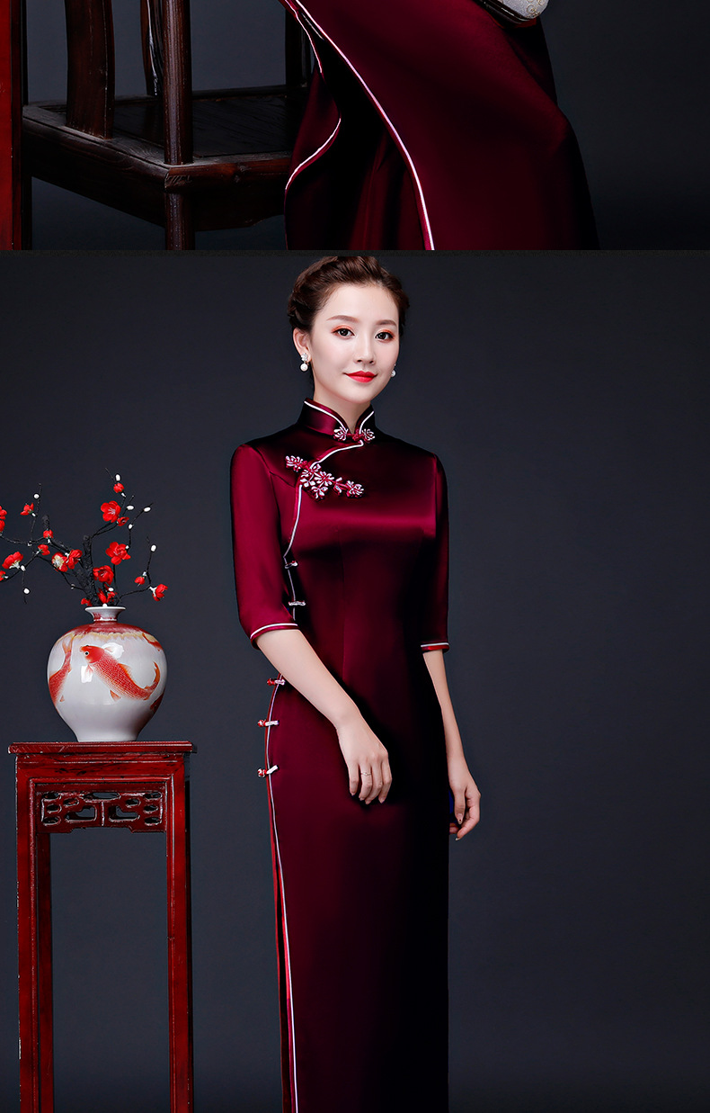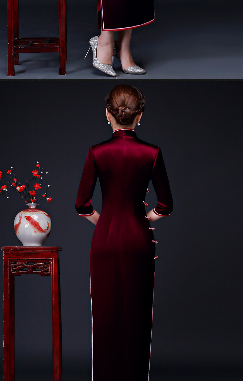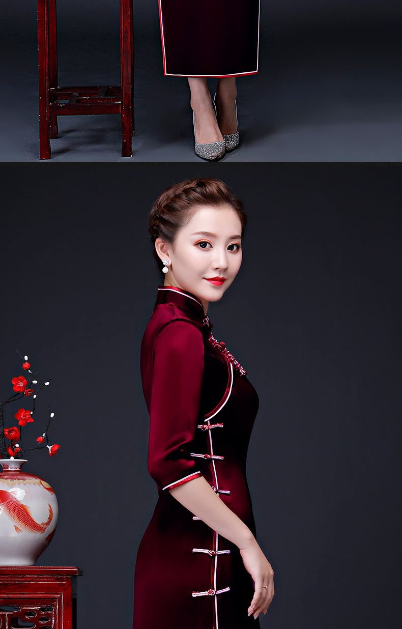 LHS-L06182妈妈装长款旗袍秋冬季喜婆婆婚礼旗袍裙婚宴服
