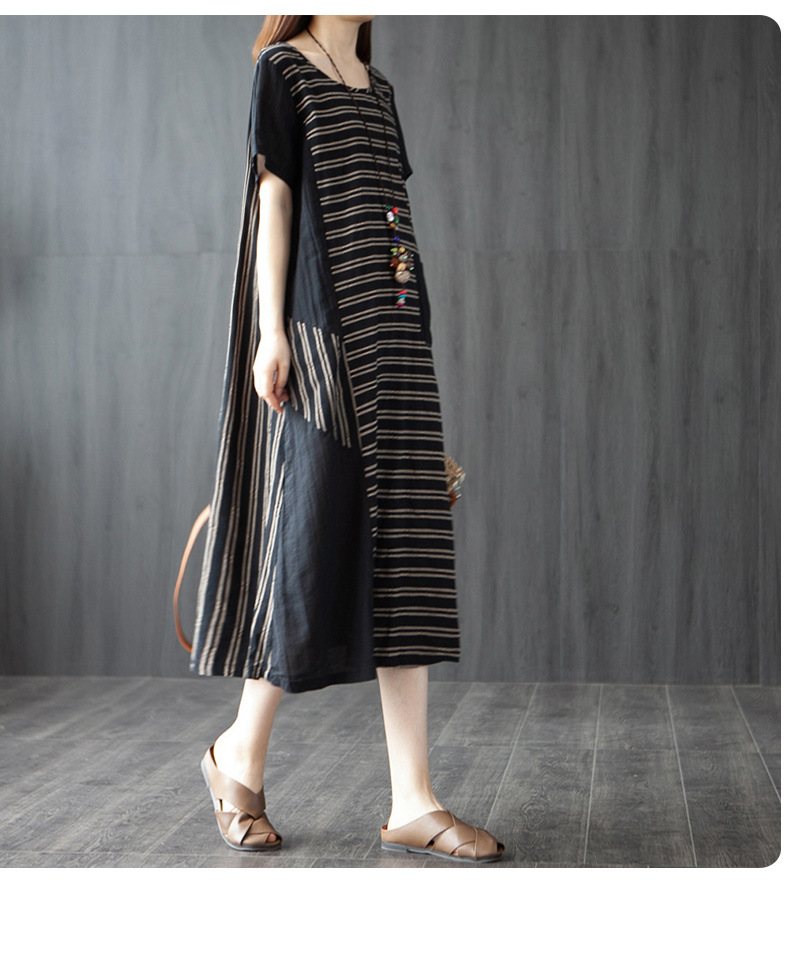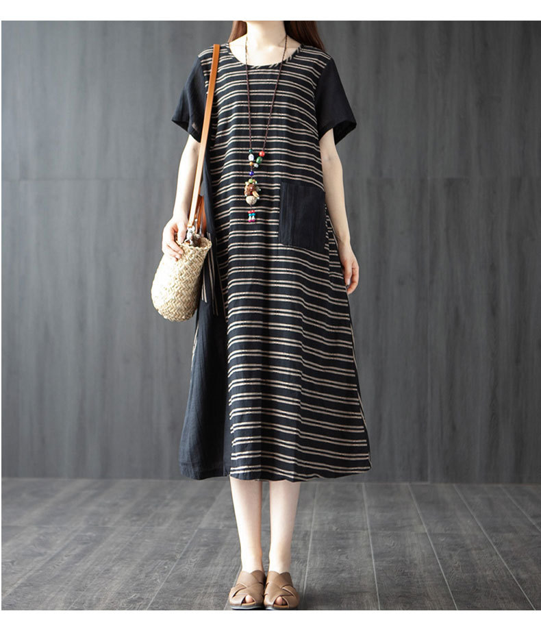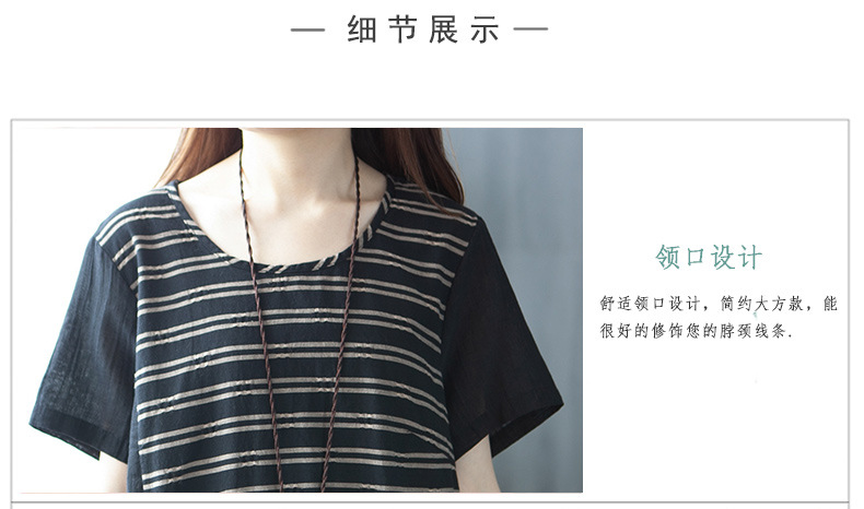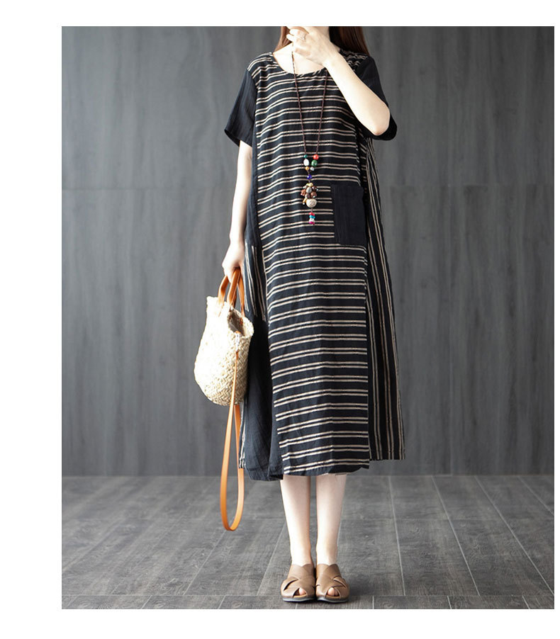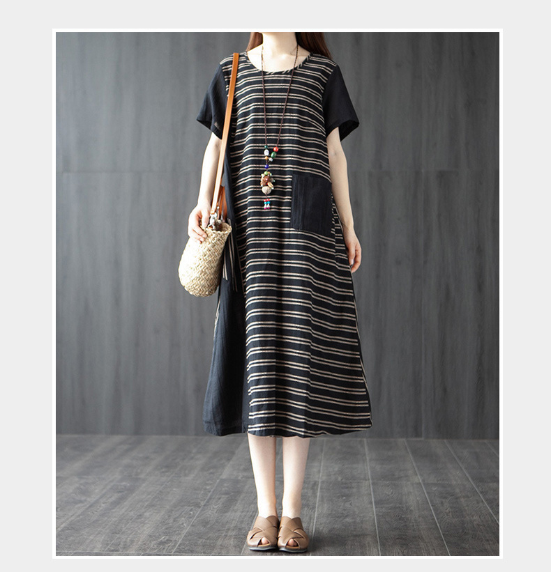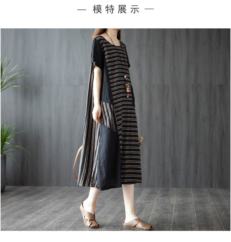 XYD-6053夏新款2020洋气条纹拼接打底显瘦棉麻连衣裙