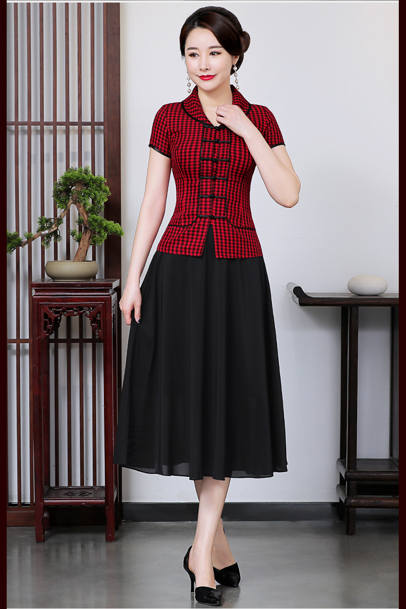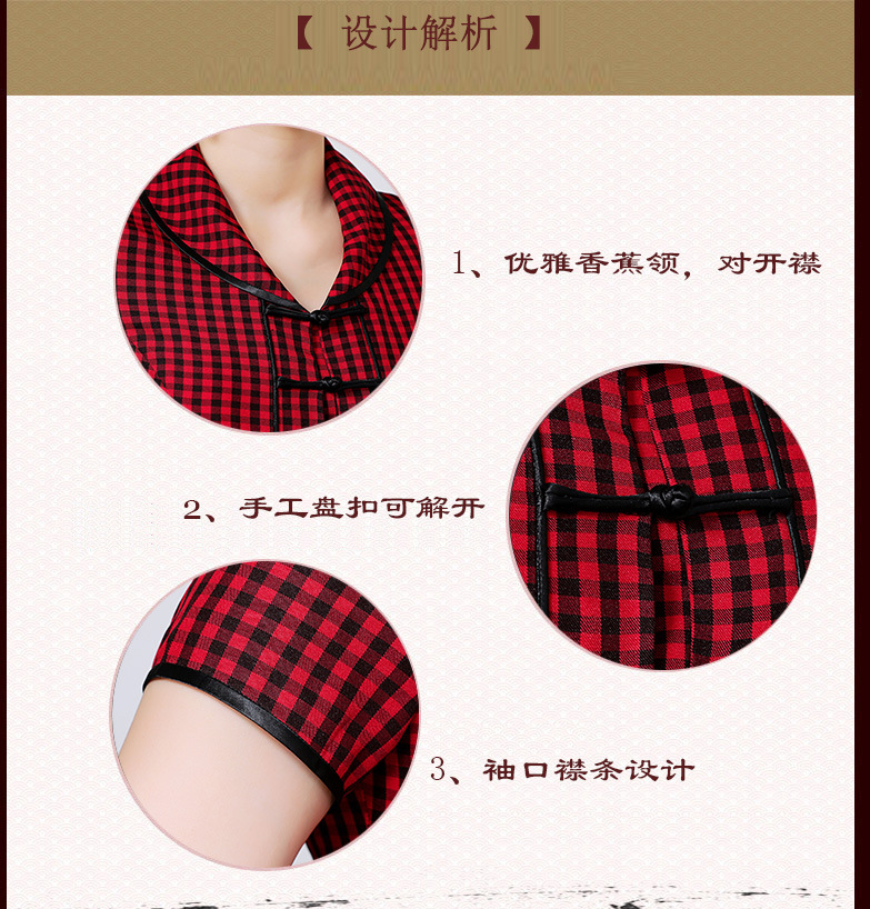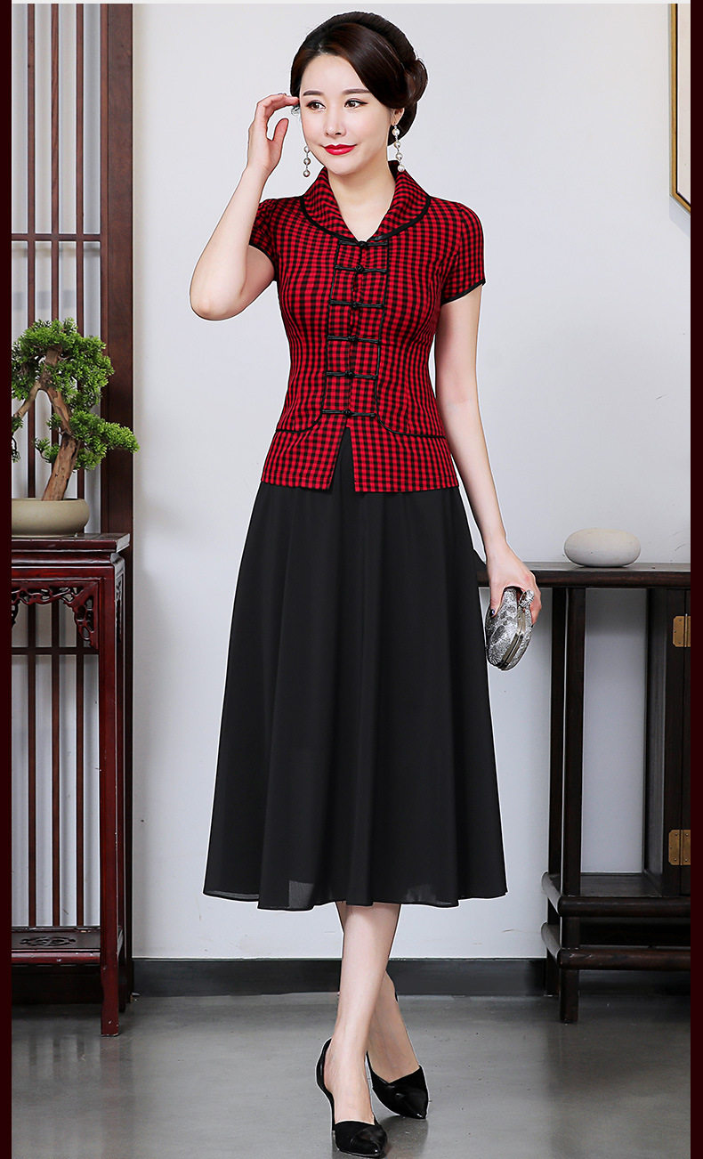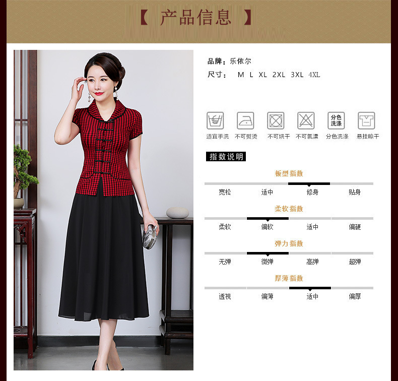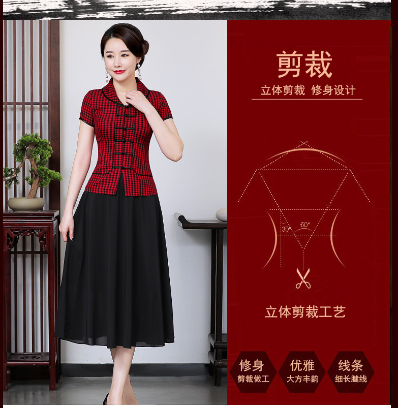 HH-2090千鸟格短袖旗袍民族风日常妈妈装