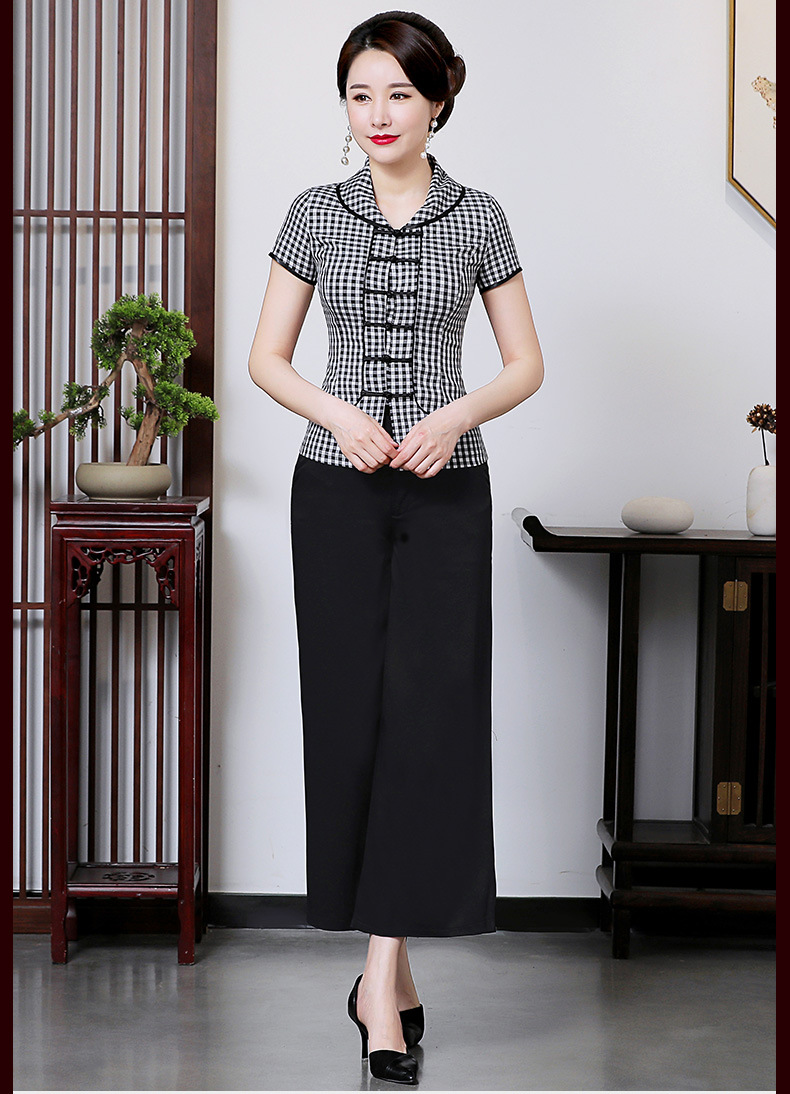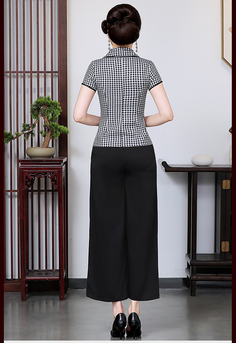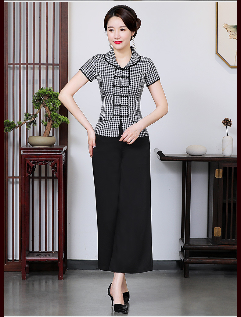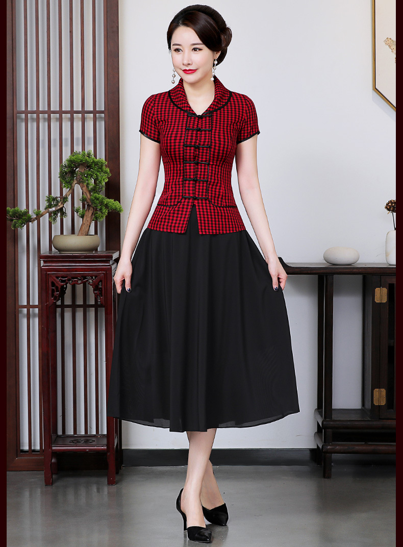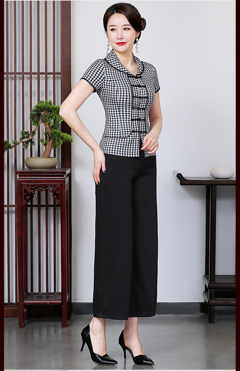 HH-2090千鸟格短袖旗袍民族风日常妈妈装