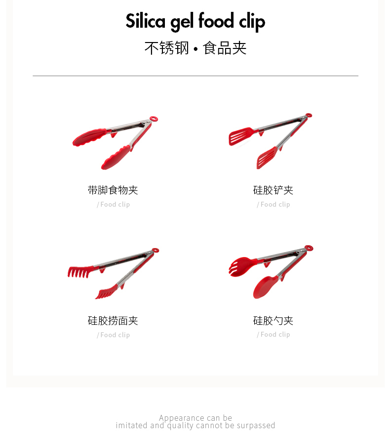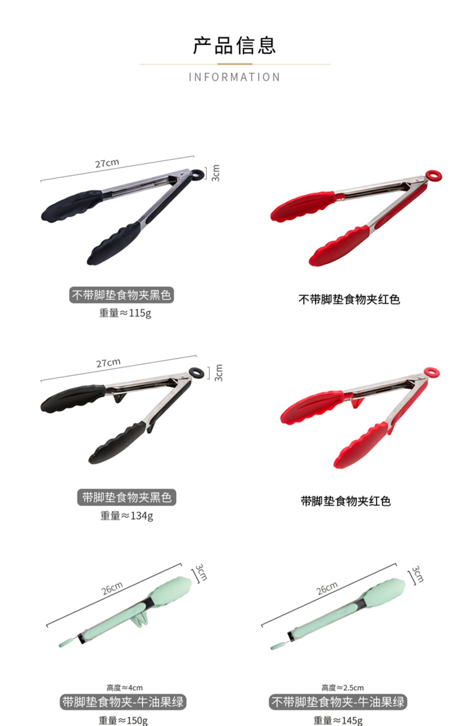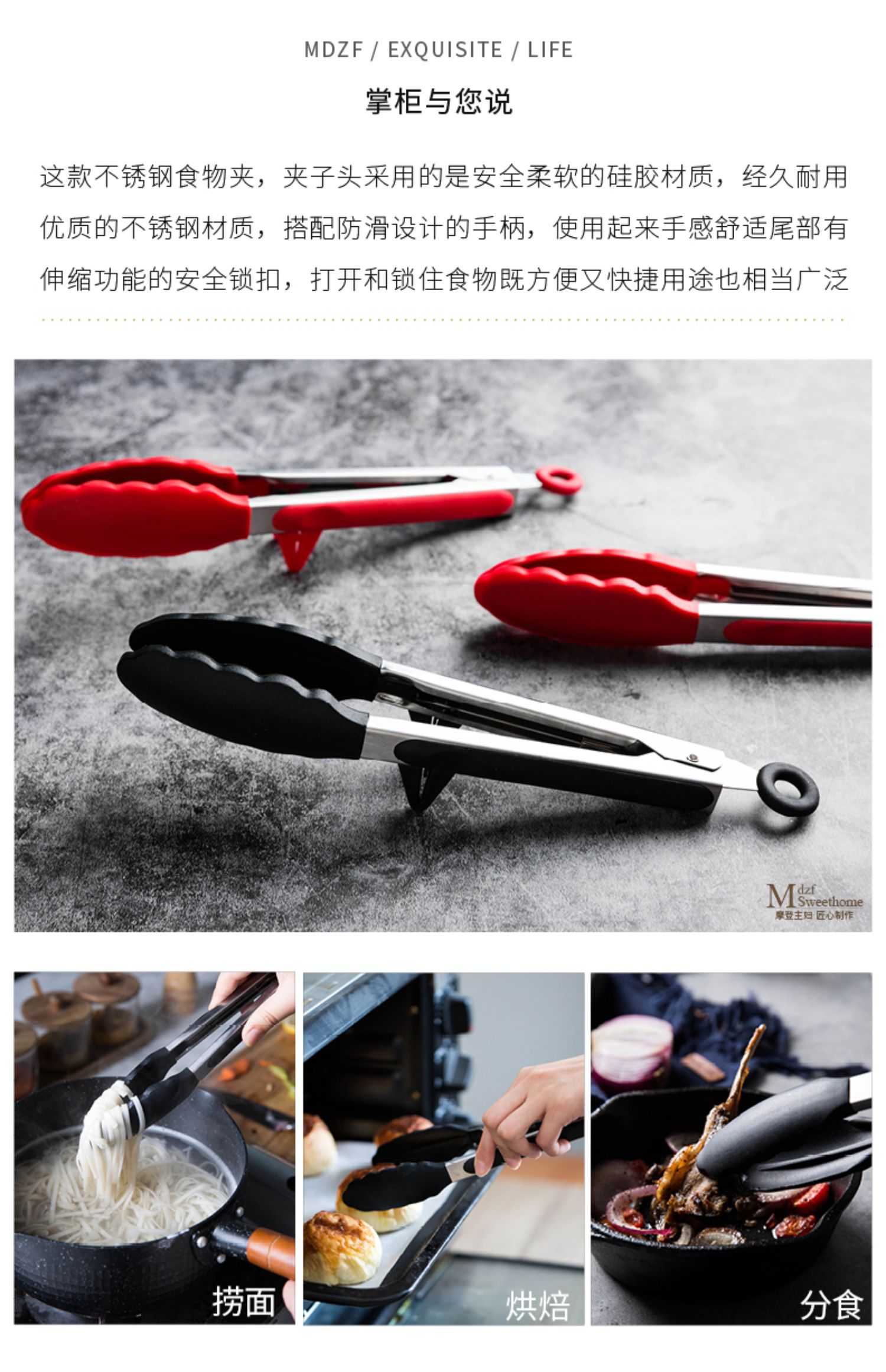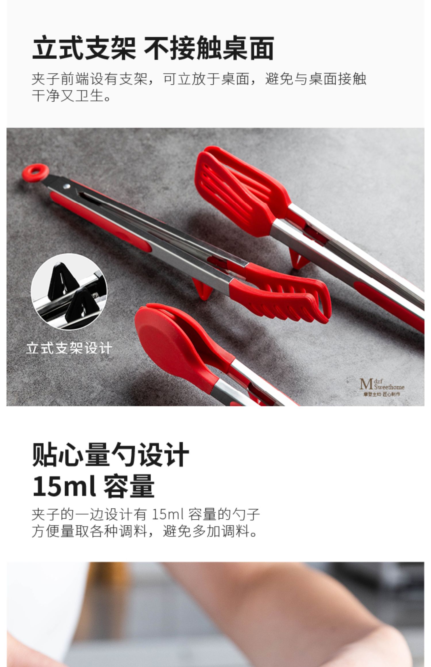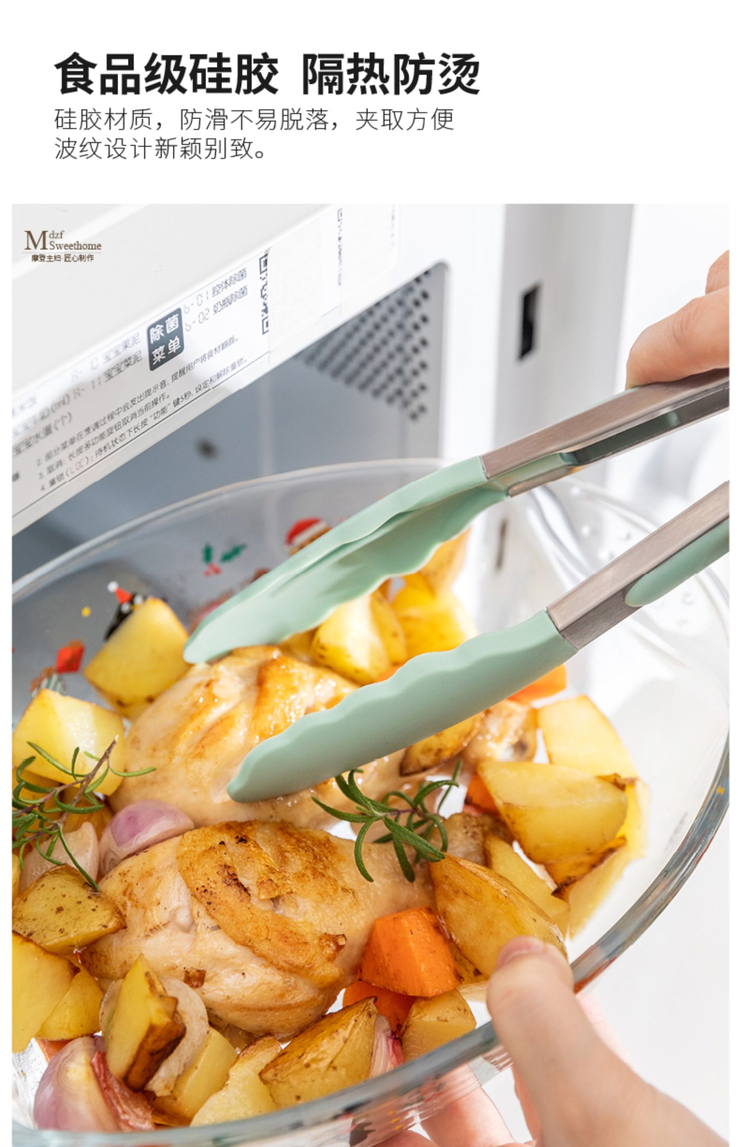 摩登主妇牛排夹烧烤夹食物夹食品级硅胶面包夹烤肉夹防烫厨房夹子