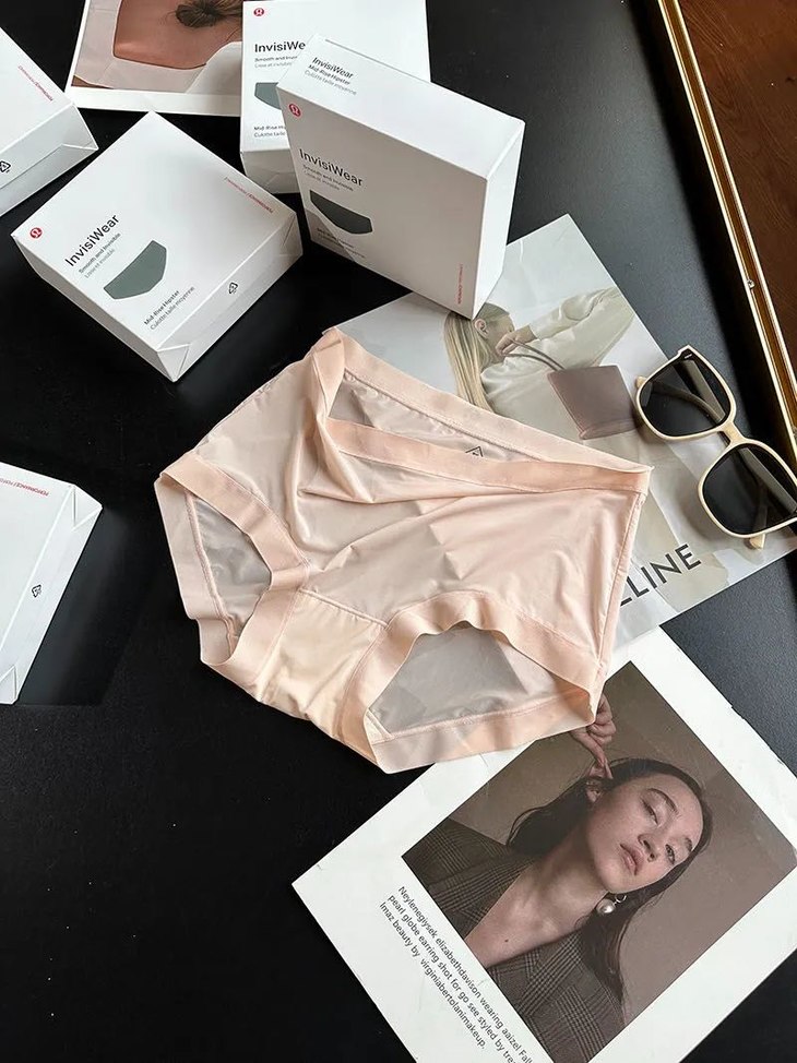 LULU女士无痕冰丝裸感透气盒装桑蚕丝内裤一盒三条