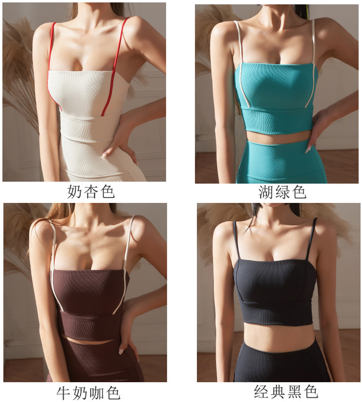 【超级团购】跃牌【禅语梵心系列】撞色细带美背运动内衣罗纹防震跑步健身文胸速干瑜伽背心 FX1906