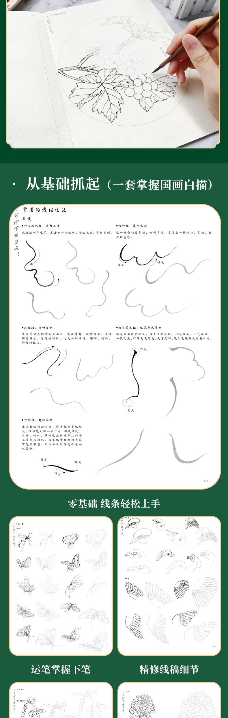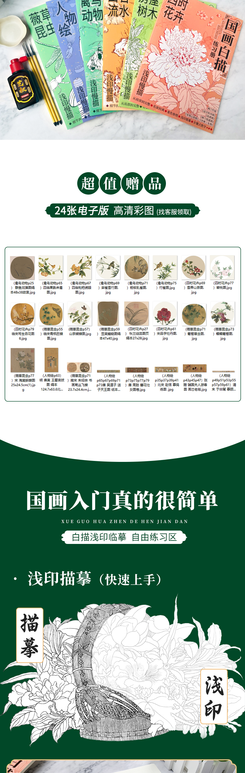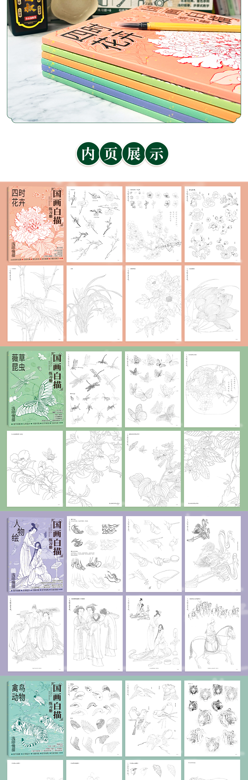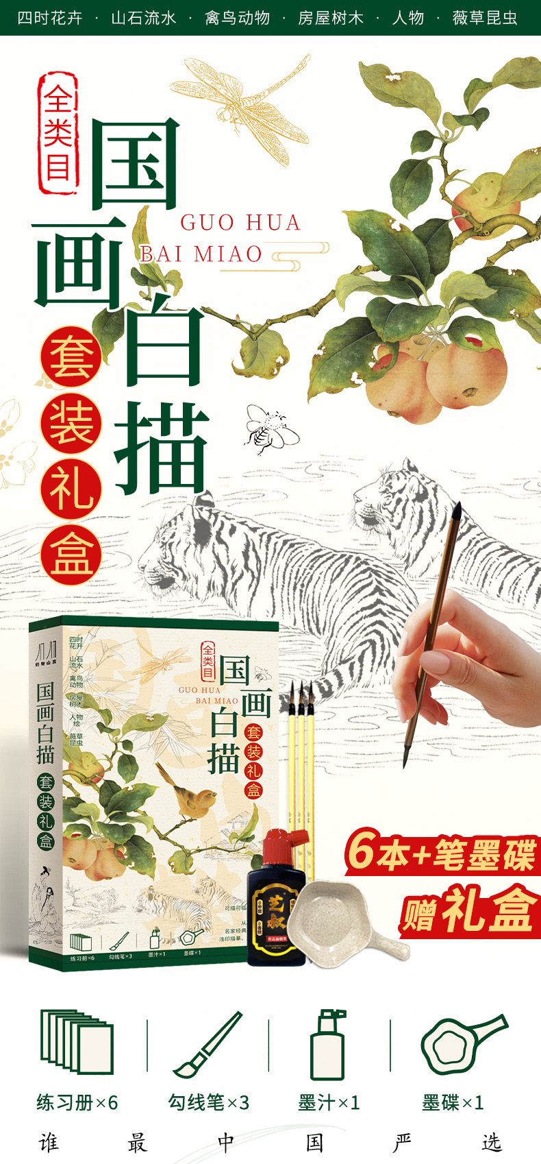 国画白描礼盒 循序渐进 由简入深的练习 内容丰富 一书多用