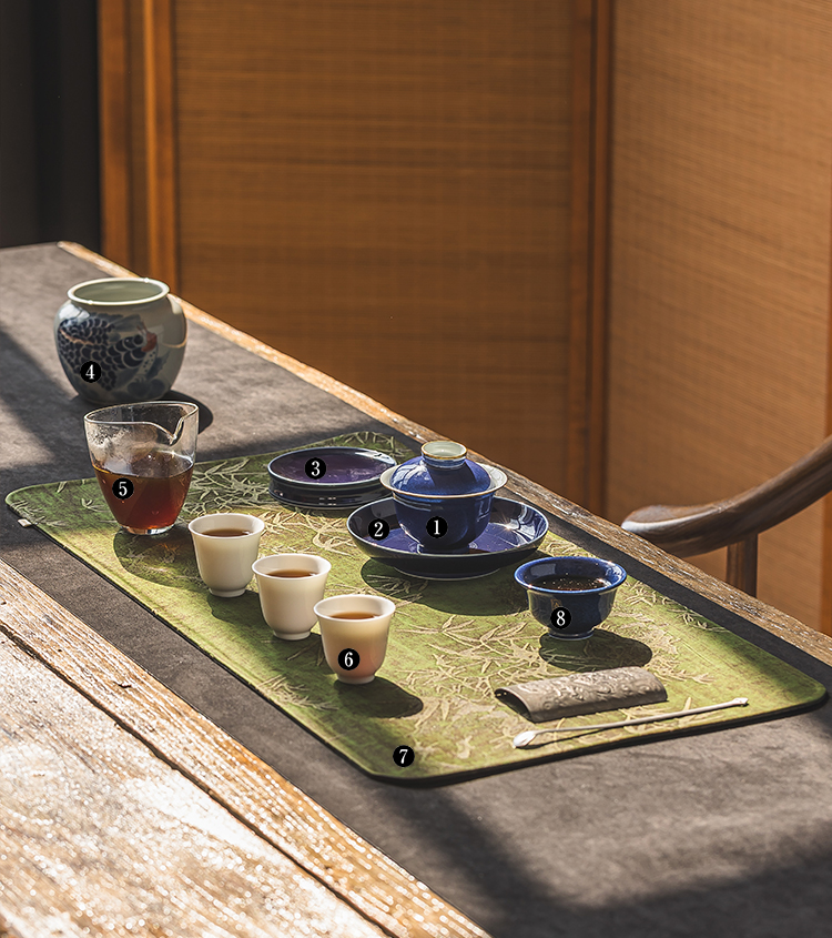 茶香记雪花蓝描金兰亭盖碗洒蓝100ml景德镇颜色釉陶瓷泡茶器古典明艳