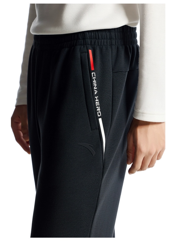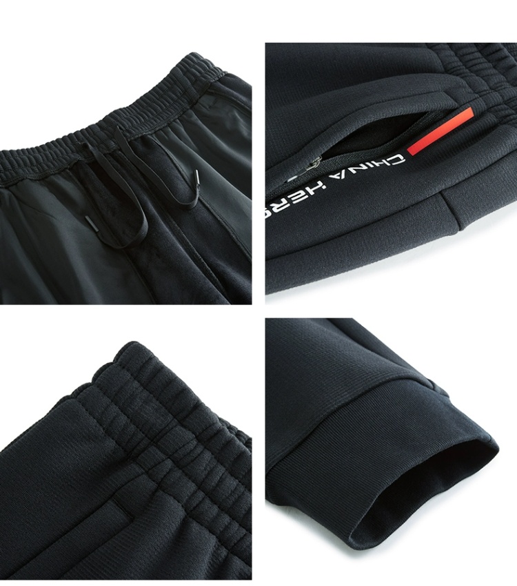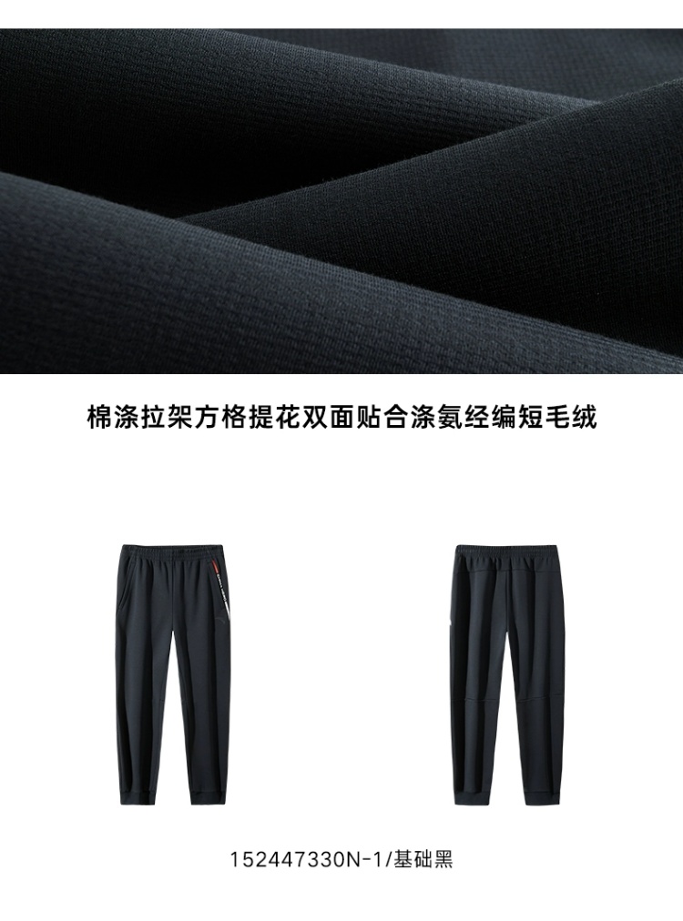 安踏运动卫裤男秋冬季加绒保暖黑色运动长裤束脚裤子152447330N