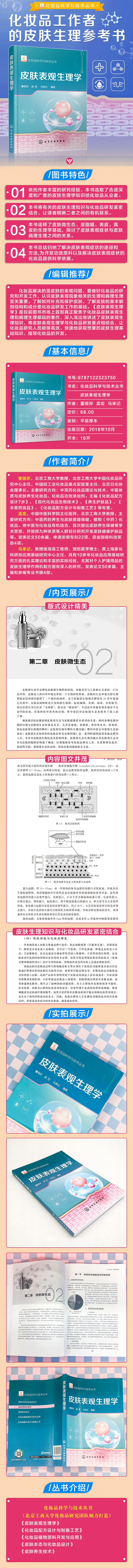 《皮肤表观生理学》各章各有侧重,以期将纷繁的皮肤生理基础内容与化妆品研究重点相结合,让化妆品研究人员高效、快速地获取想要的皮肤生理基础知识,指导化妆品的开发。