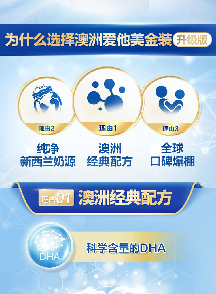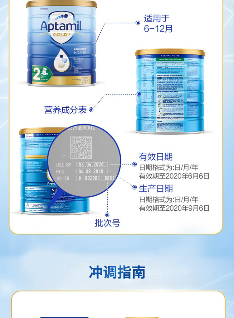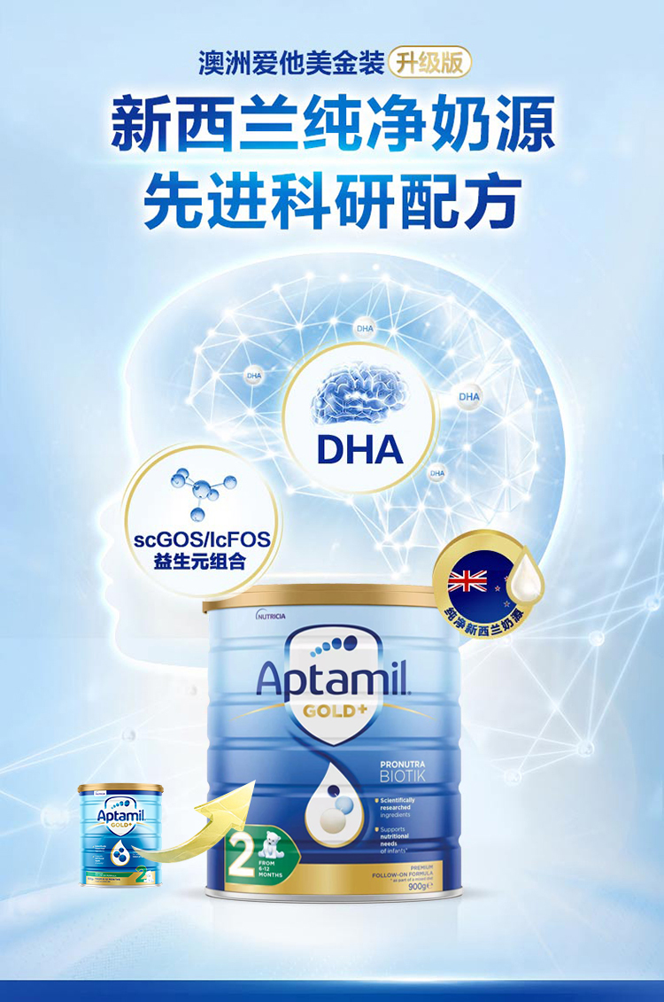 【海外直邮】澳洲Aptamil新西兰爱他美 金装婴儿配方奶粉 2段 900克 6-12个月