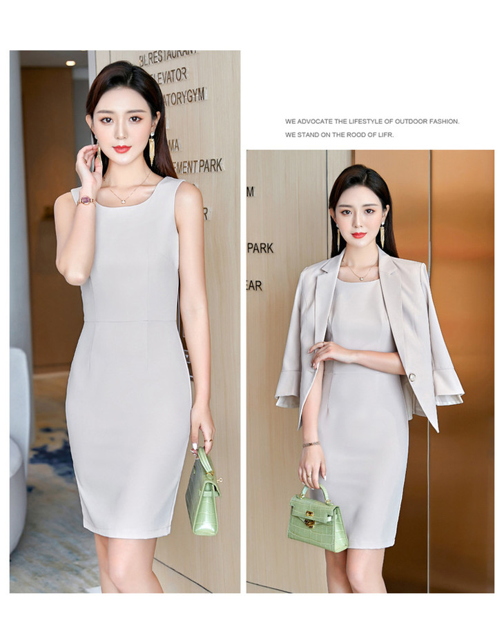 MGG-YQ-8621+911 小西装外套连衣裙两件套春夏小西服套装气质薄款
