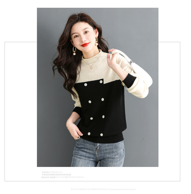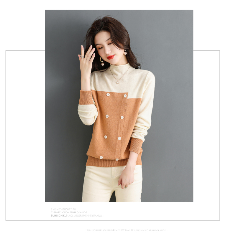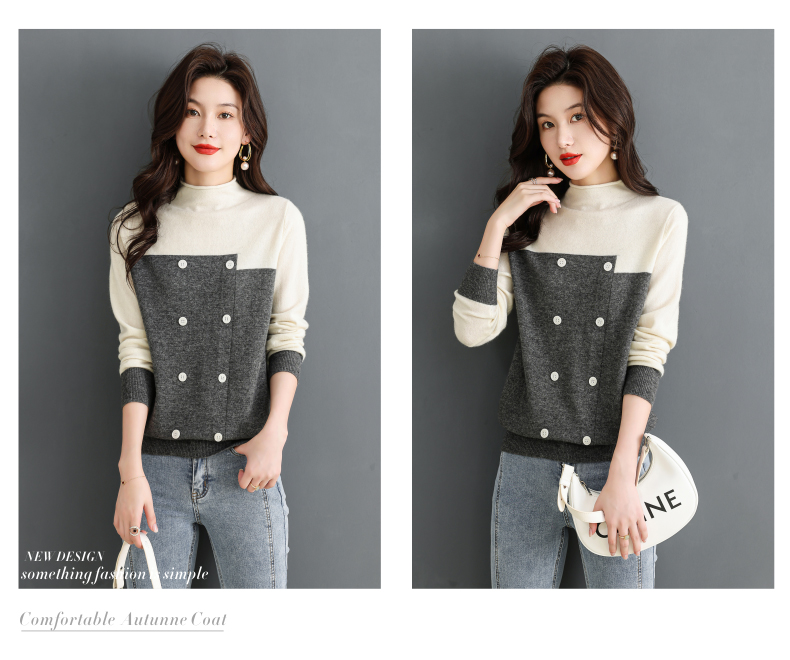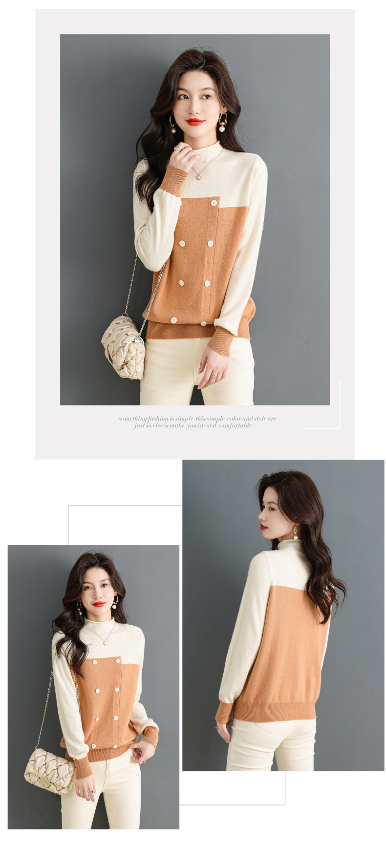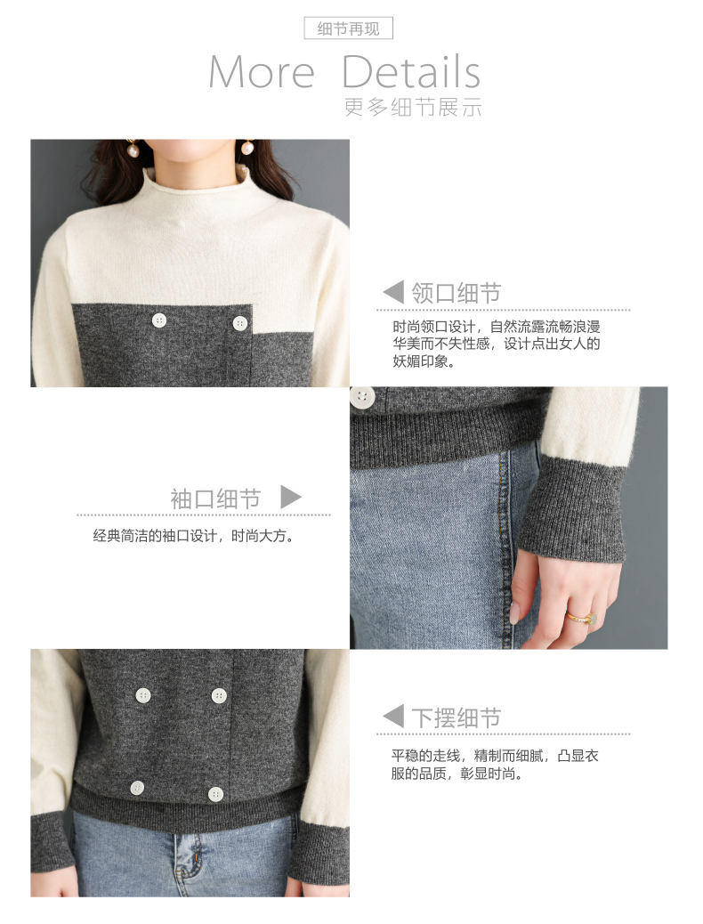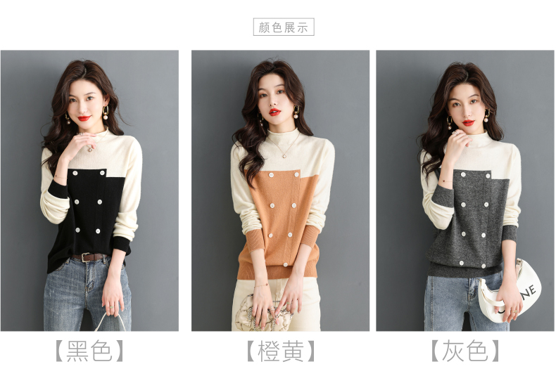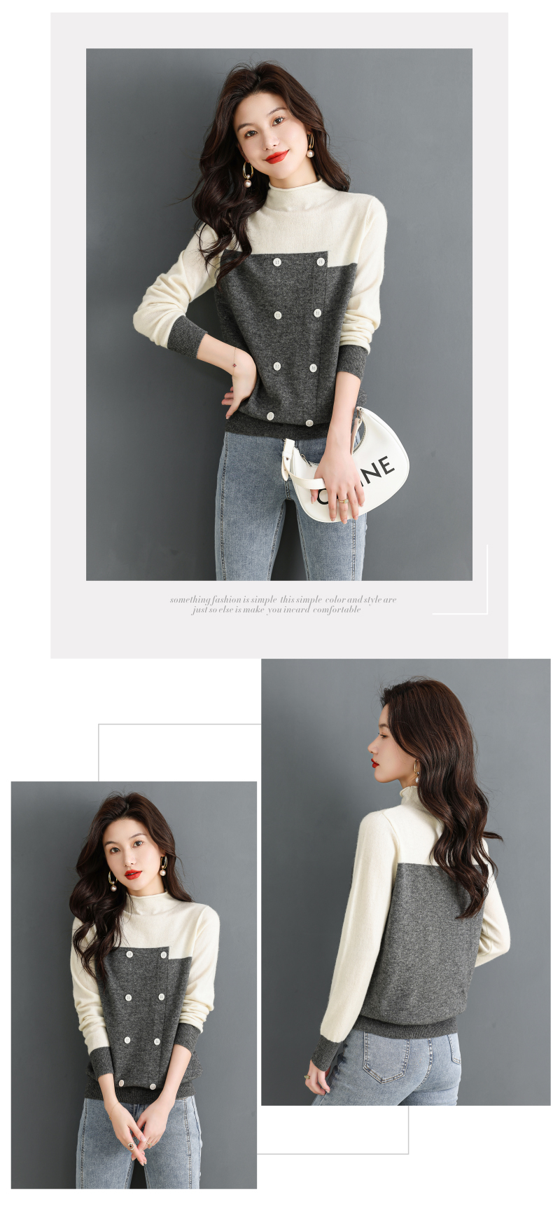 拼色羊毛衫100纯羊毛毛衣 CC-6090