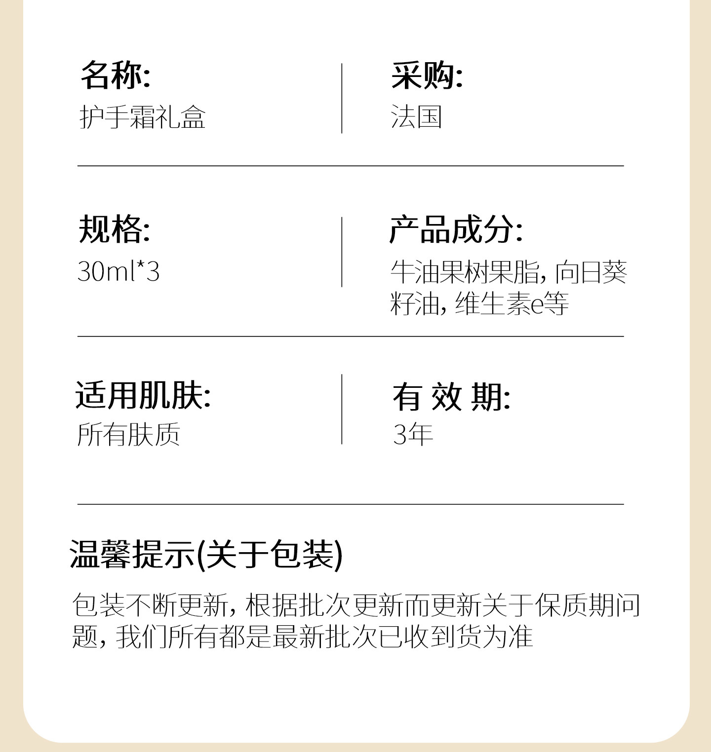 【新品】法国欧舒丹护手霜30ml*3 三件套礼盒(配礼袋)