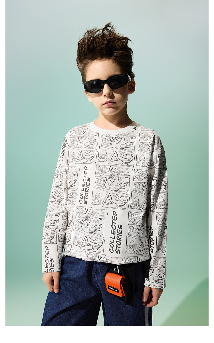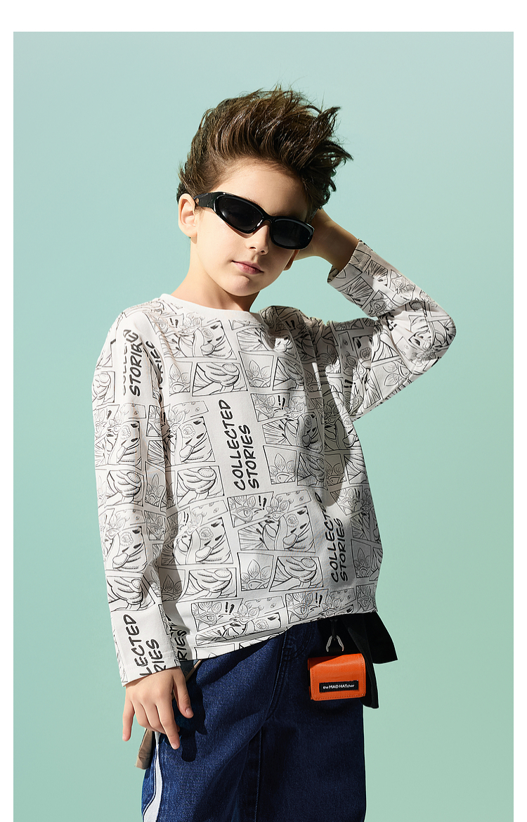 【MQD】【国潮系列】男童长袖t恤春季新款宝宝上衣儿童打底衫